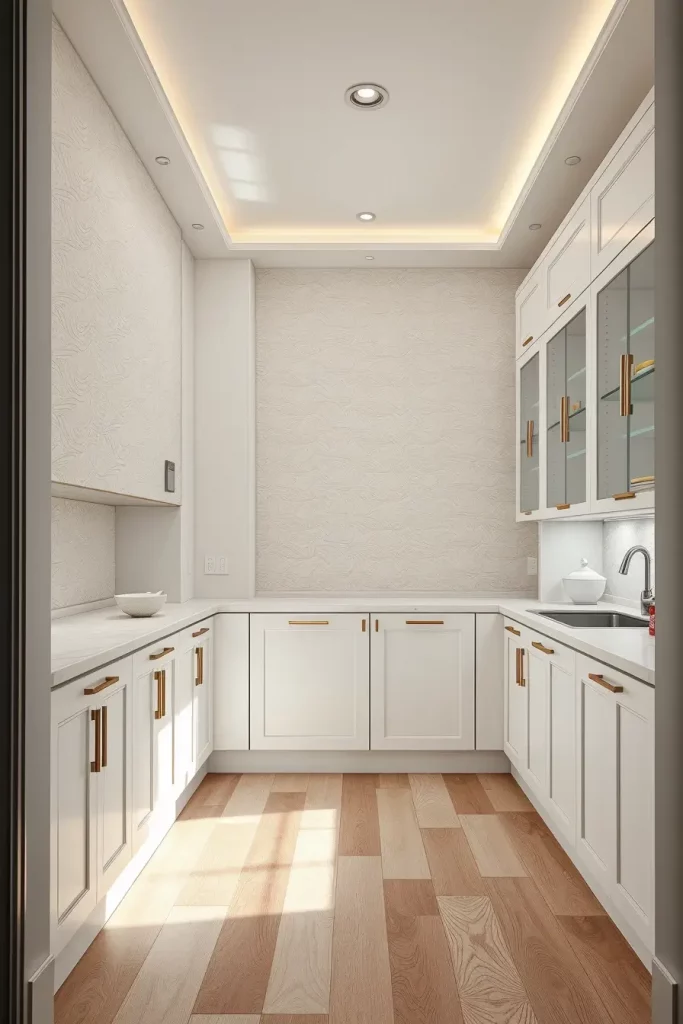 For those who prefer a clean and sharp attention to detail, minimalist pantry room designs with concealed storage are ideal. I find this layout is best suited for contemporary houses with open-plan kitchens, where visual clutter is a concern. There is an elegant integration of concealed compartments which separates form and function.