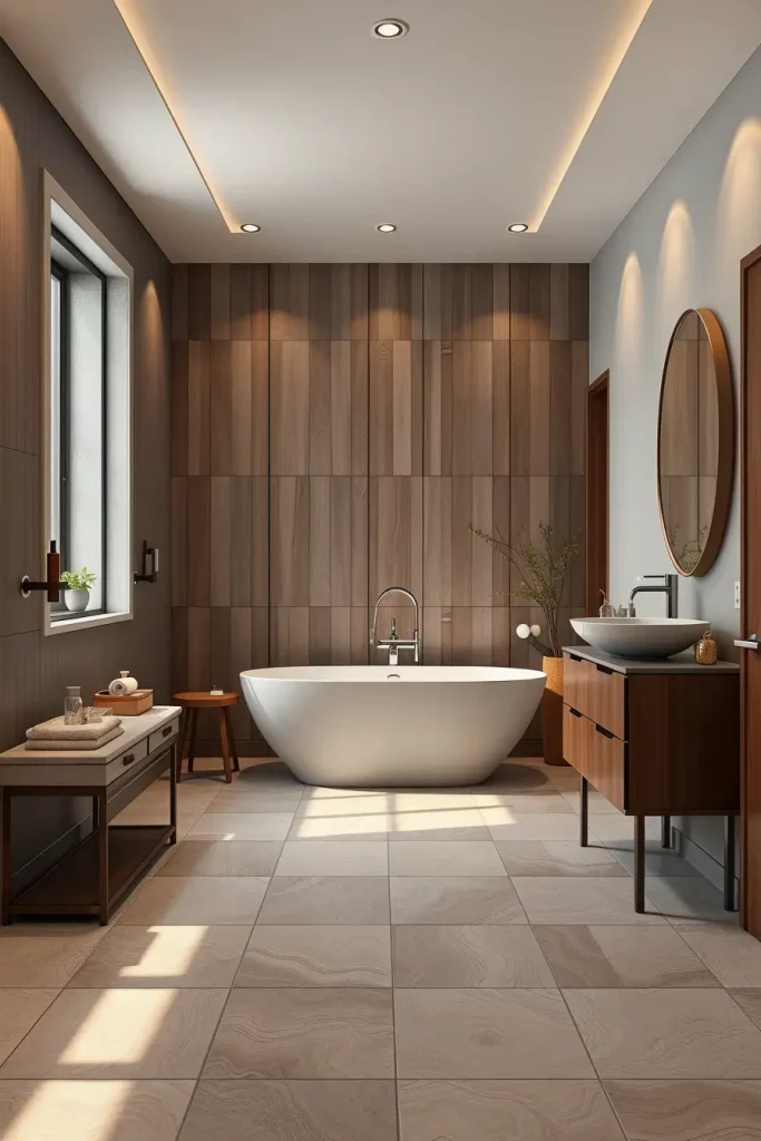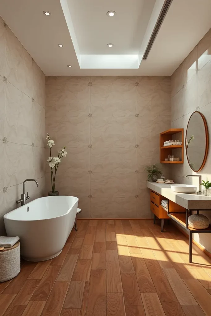Wood-Look Tiles for Warm and Durable Bathroom Floors