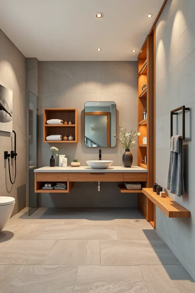 Regarding design integration, I usually combine anti-slip tiles with a sturdy floating vanity, a walk-in shower with a linear drain, and transparent panels of glass which ensure that the room has a free visual space. Soft-finished fixtures; brushed brass or satin chrome are not distracters of the functional values of the flooring.