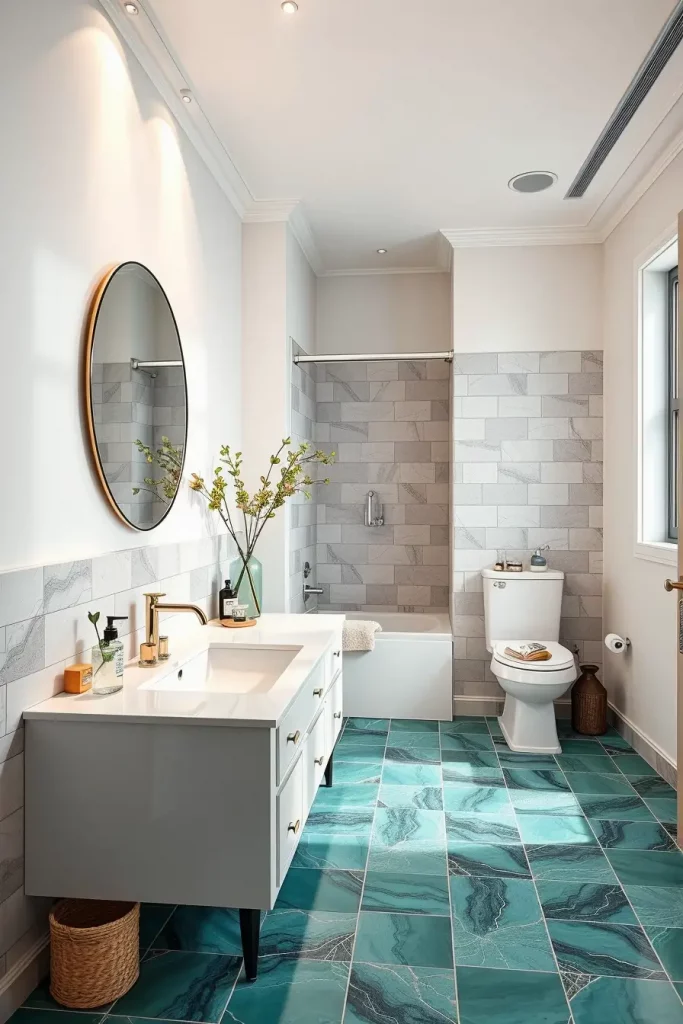 Bold colors are also making an unmistakable statement as far as bathroom floor tile ideas 2026 is concerned. When I choose the bathrooms with deep emerald, terracotta, cobalt or even sunflower yellow floors, I think of the balance in rest of the room. Vibrant flooring is ideal with the walls and other elements being of a neutral type in the room, where the color will not overwhelm the room. These floors immediately make a bathroom fly higher, and it becomes innovative and unforgettable.