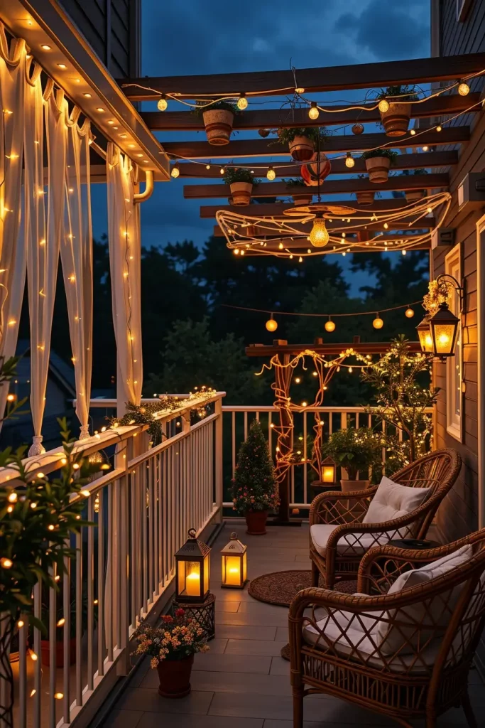 In case of apartments or smaller houses, I usually focus on the balcony and court areas and illuminate them with lights. These are not spacious spaces but can have a huge celebratory effect. Trends in 2025 will prefer the canopy effect of hanging lights along balcony railings or drape over the heads.