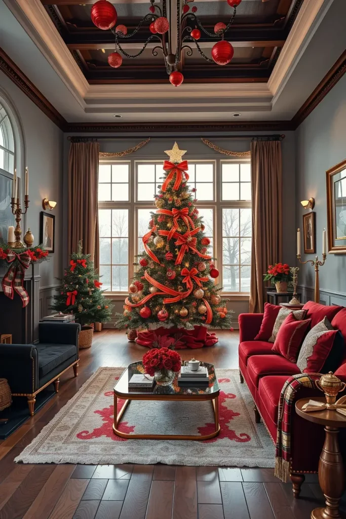 Christmas trees are bold red and are good in making a statement. This appearance is available either by using all red colored artificial tree or some other form of heavy red decorations on a green base, which gives a dramatic and festive appearance. This kind of style is frequently suggested to people with their own homes who prefer tradition, yet do not want a dull look but something modern and striking to look at in the 2025.