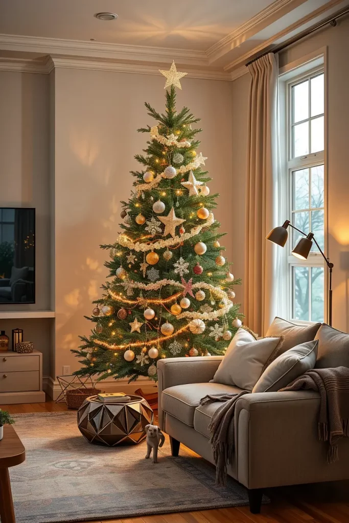 A design of crystal-inspired Christmas trees is also on trend in 2025 and will bring glitziness and glamour to the current houses. Such trees are brightest in areas where the layout is open and there is high sophistication in the interior. I usually keep them in rooms whose walls are light, and reflective to make the maximum shimmering effect.