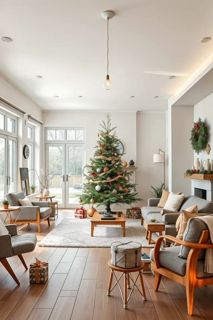 I prefer to take outdoor decor focusing on durability and ambiance. An outdoor Christmas tree will go well with metal lanterns, solar-powered lights and waterproof garlands. I usually recommend two or three smaller trees with varying heights as a method of providing visual balance to the garden and adding depth to it. Furniture around the place, e.g. rattan chairs or wooden bench, should also reflect natural sounds as a way to keep the place in balance with the decoration.