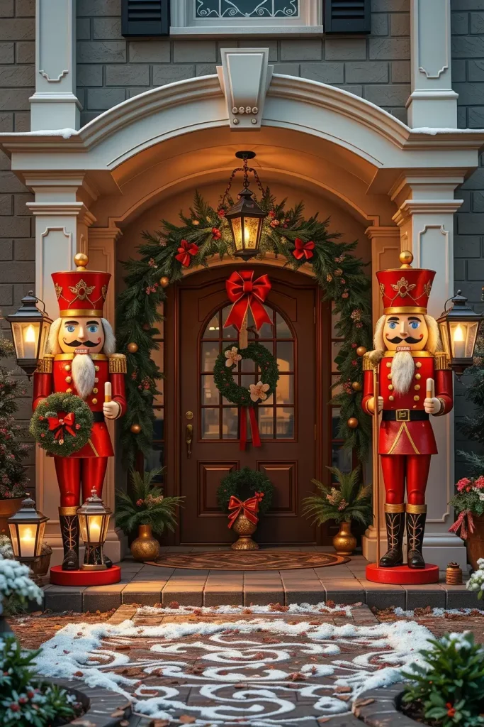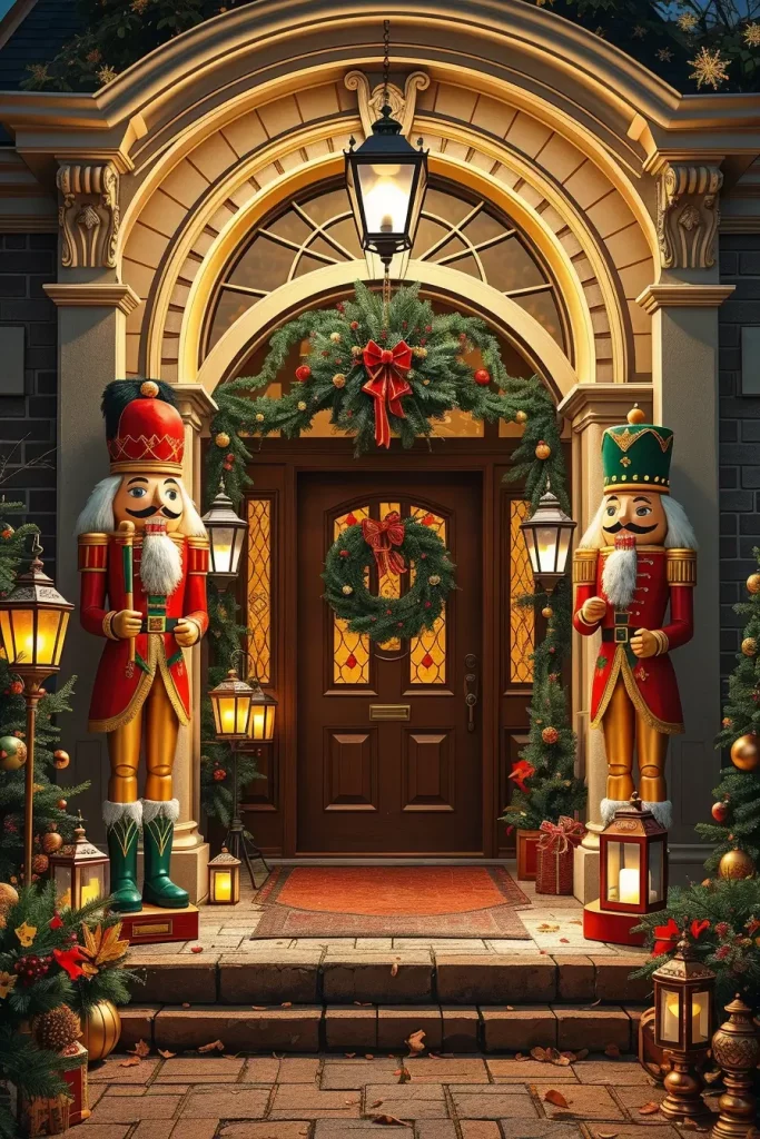 A small detail I would add here is to have an equally designed doormat or mailbox cover with the same theme of the nutcracker. It connects the theme and brings internal harmony to the decor.