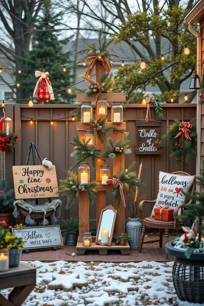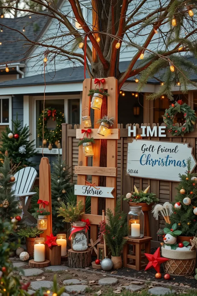 My first suggestion is usually to begin with recycled objects, such as the re-purposed pallets into Christmas trees or the used jars into lanterns made of candles. One can even paint tires and lay them in stack and decorate them to make huge items on the lawn.