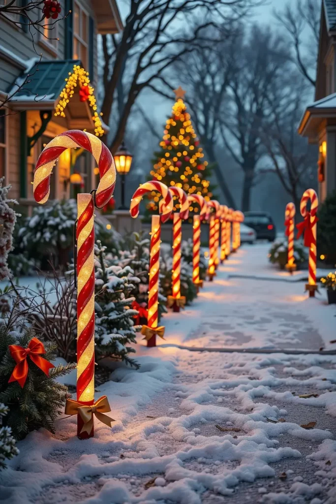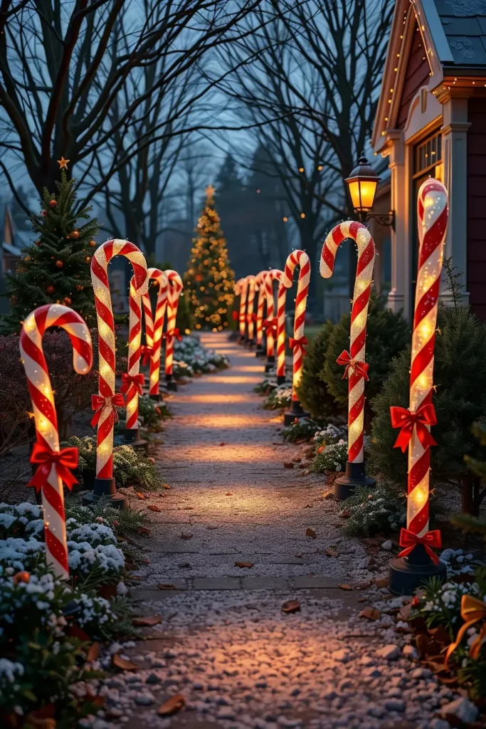 Candy canes come to my mind as one of the most popular and usual Christmas yard decorations. Markers of candy cane paths are not only decorative, but also practical and will direct guests to the entrance. Trendy candy cane markers are LED lights in 2025 owing to their energy efficiency and the ability to be customized to suit.
