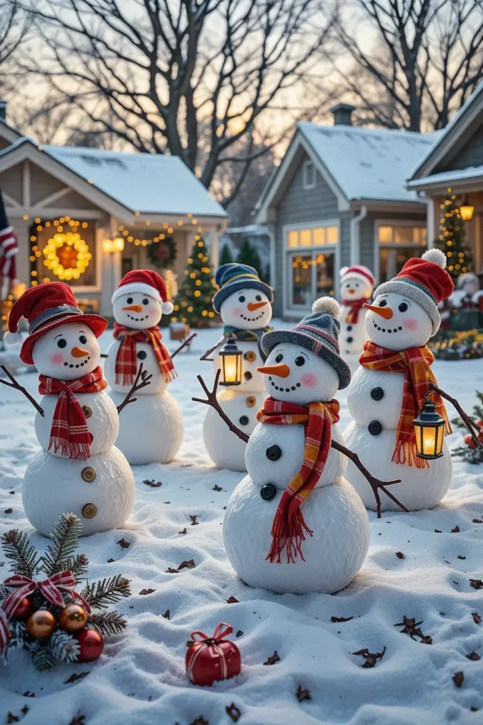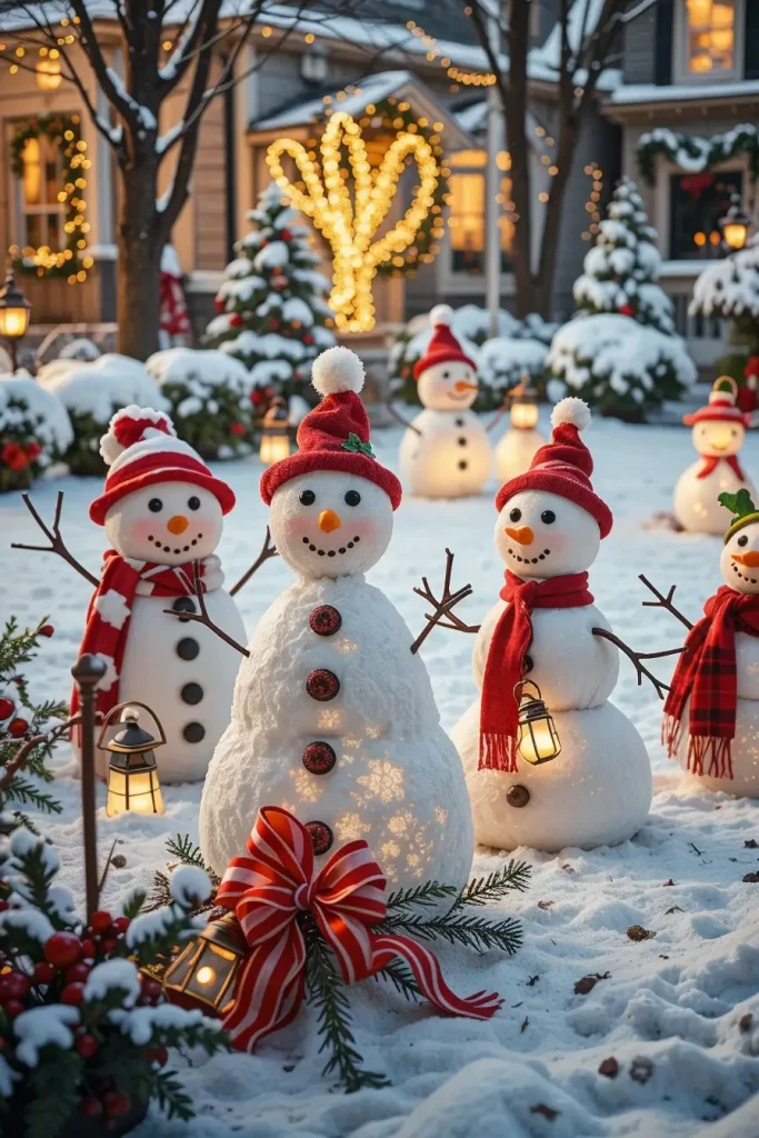 I have made several snowmen in various yards and with several accessories such as scarfs or hats and even lanterns. It is more festive to pair them with candy canes circles or over-sized ornaments.