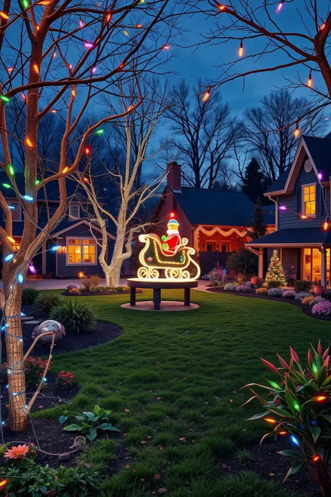 What I would have added here is addition of complementary neutral accents such as the use of white or golden lights so that the yard does not appear too busy. In colorful designs the balance is important.