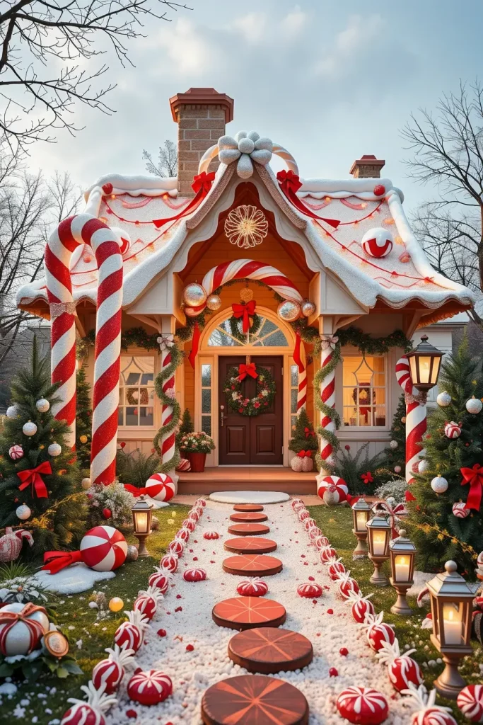 In order to develop this theme, I would incorporate a peppermint-themed walkway to the porch or door. This fact brings the whole design together and provides tourists with a virtual holiday.