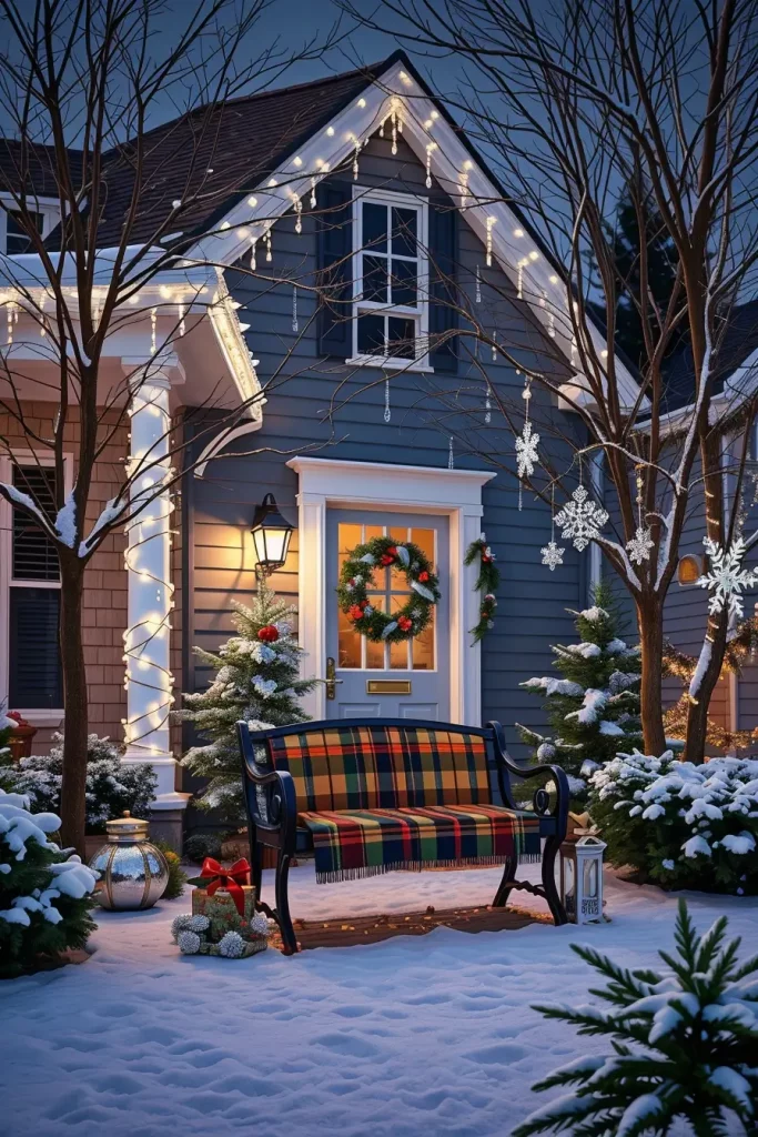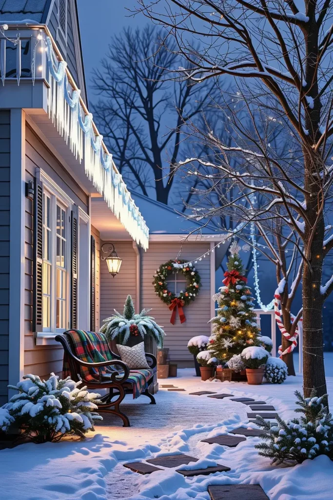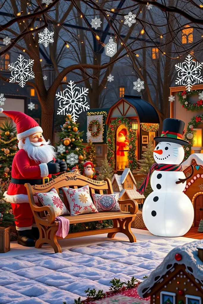 A popular one of this category is the inflatable decorations. Children are immediately interested in a Santa, his sleigh, a huge snowman, or reindeer, and it creates a merry atmosphere. I tend to recommend such inflatables to be paired with animated light projectors that spill snowflakes or candy canes in the yard. In order to give it a homely touch, small benches with plush pillows or holiday throws can be a story-telling corner in the outside world.