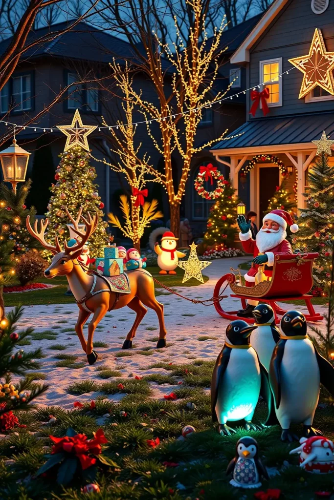 I like taking an animated sleigh with smaller figures in my personal yard, such as penguins that dance around or snowmen that move. When they are put out on the lawn with the aid of spotlights, they make sure they are the center of attention. I would also suggest combining them with both static decor, such as lighted trees or star lights, in order to create a harmonious appearance.