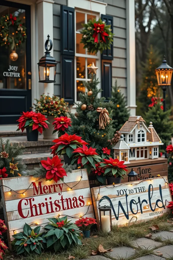 On my part, at one point, I made a rustic signboard by reusing barn wood and decorating it with a few LED lights at the corners. It was made a focal point in the yard of mine particularly when paired with poinsettias and lanterns. Some designers suggest combining rustic decor with modern lighting in my case; it is a great match, and I have discovered that this combination works best.