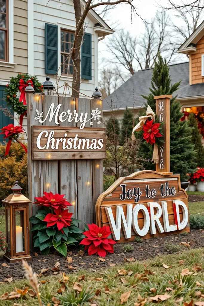Wooden signs in a rustic style are not only a beautiful element to add to the Christmas yard decoration ideas in 2025. They are easy to customize, provide personality, and are warmer. I consider them convenient as they can resist the outdoor environment and can be used year after year with minimum maintenance.