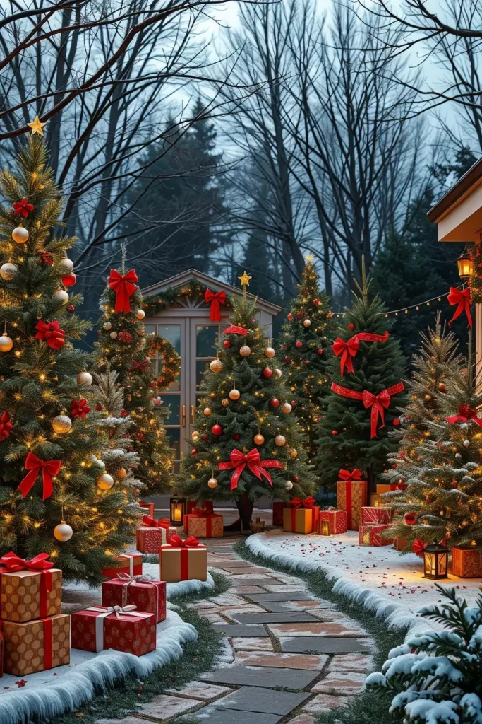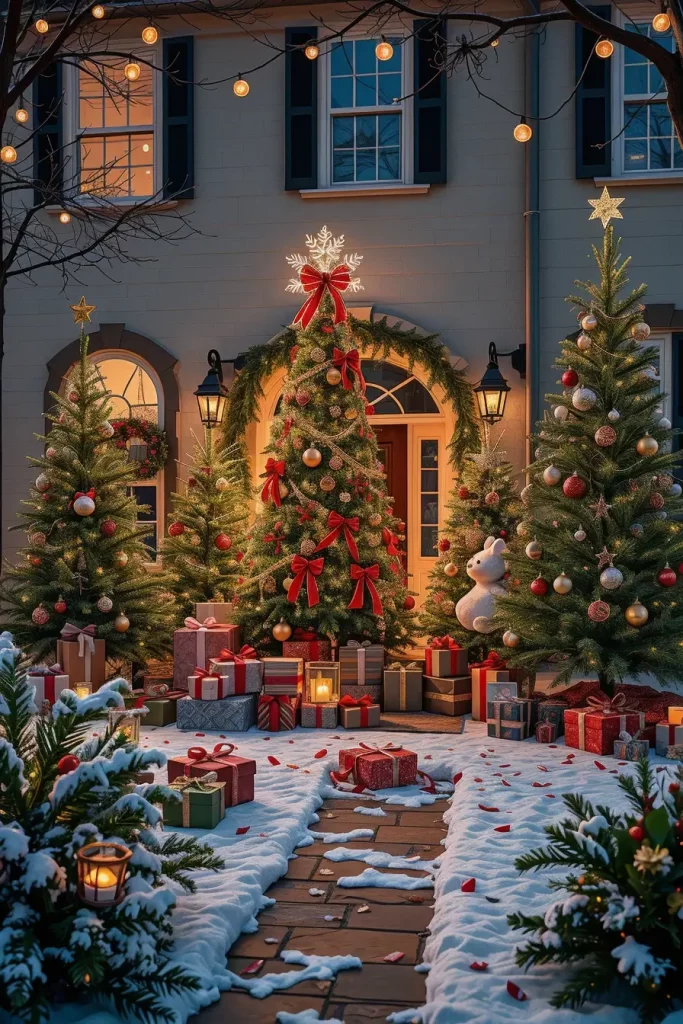 Personally, I have always been a big fan of the Christmas trees in the outdoor. One year I bought three potted evergreens and put along the entrance and hung them with warm white lights. The luminousness was extended to the yard, and it made a warm and welcoming entrance. Balance is an element that designers primarily emphasize when designing outdoor holidays, and I would say that the placement of trees in odd numbers (three or five) would offer a more natural flow.