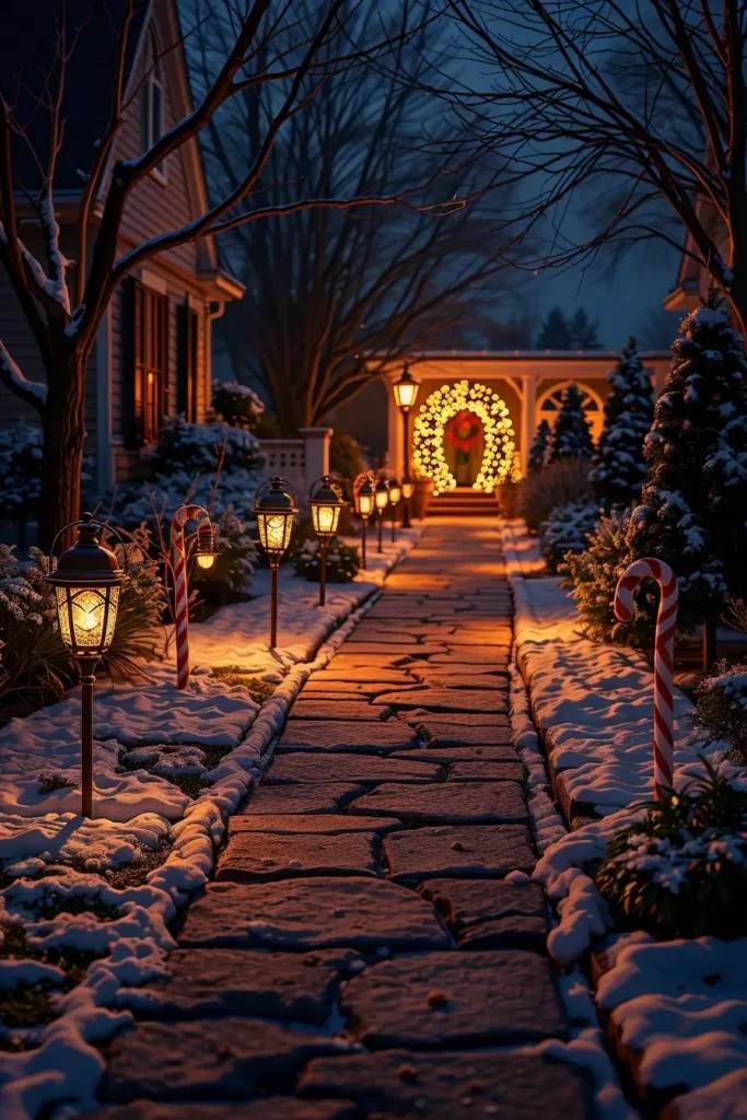 I frequently use pathways lined with some of the low lantern-style stakes with candles cane or star lights as the alternation. The effect is also magical mostly on snowy evenings when the lights bounce off the earth forming a winter wonderland.