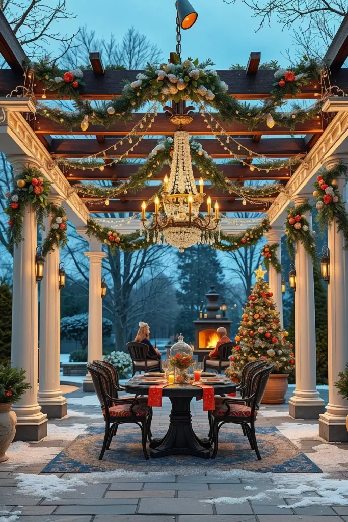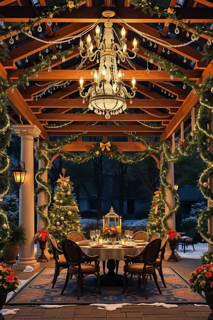 My favorite combination is outdoor chandeliers with other eye-catching items, including garland-wrapped pergolas or festooned outdoor dining furnishings. Crystal chandelier or metallic finishes are used to reflect the light and this is equivalent to adding some sparkle to evening gatherings.