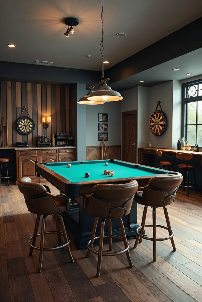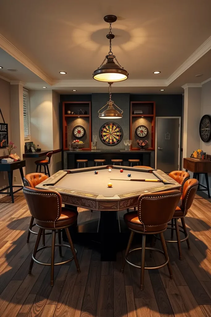 Your home will gain entertainment value through transforming your formal dining room into a gaming area with a pool table that creates new opportunities for social interaction. This transformation approach delivers excellent results for houses featuring casual dining spaces since it enables the dining room to transition into a lively social gathering area.