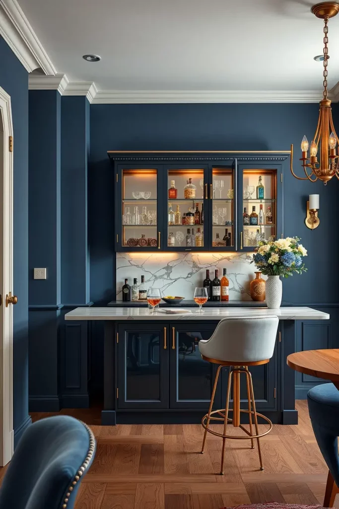 Converting your dining room into a stylish home bar provides you with a sophisticated entertainment space that keeps guests entertained within your home boundaries. This concept brings sophisticated comfort and enables you to personalize both cocktail styles and interior decoration settings.