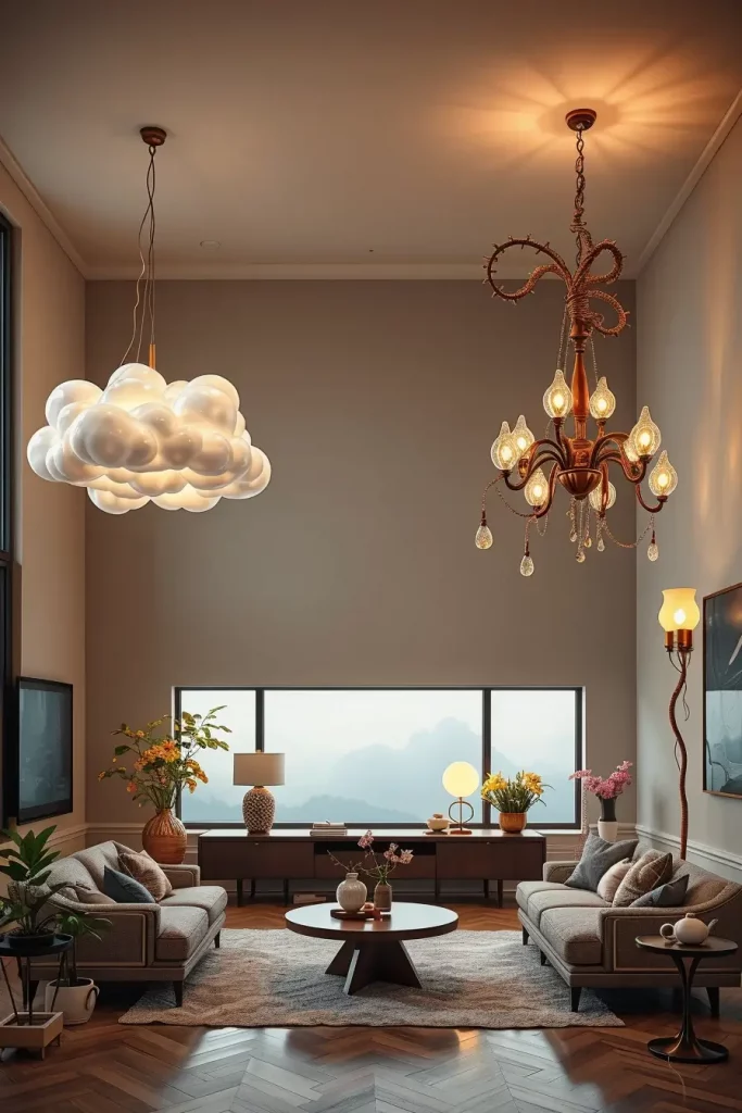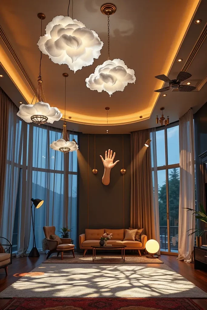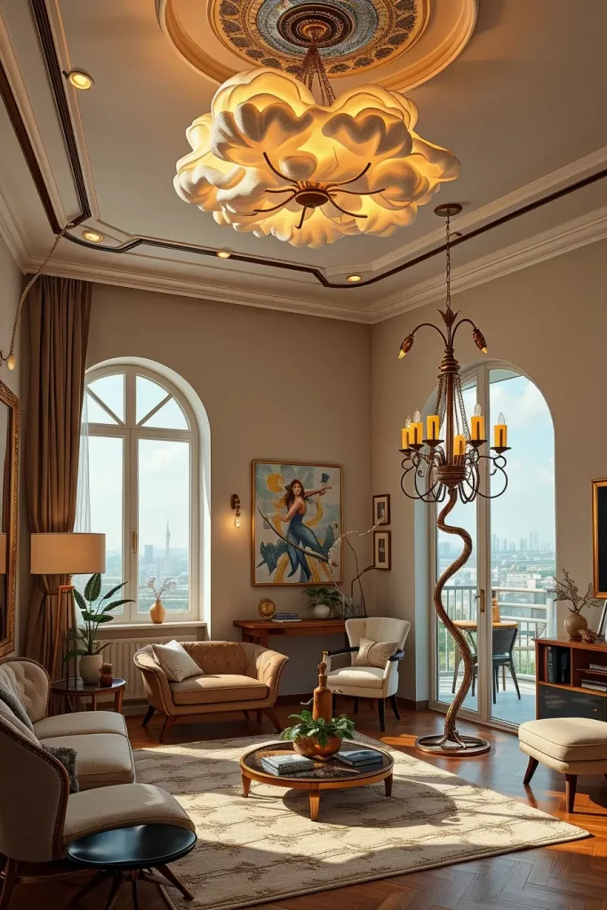 What I would still include here are lighting options Surrealist interiors really pop when paired with daring lighting, such as lamps of abstract form or chandeliers that look like falling objects. They complement the appearance and add the dramatic effect.