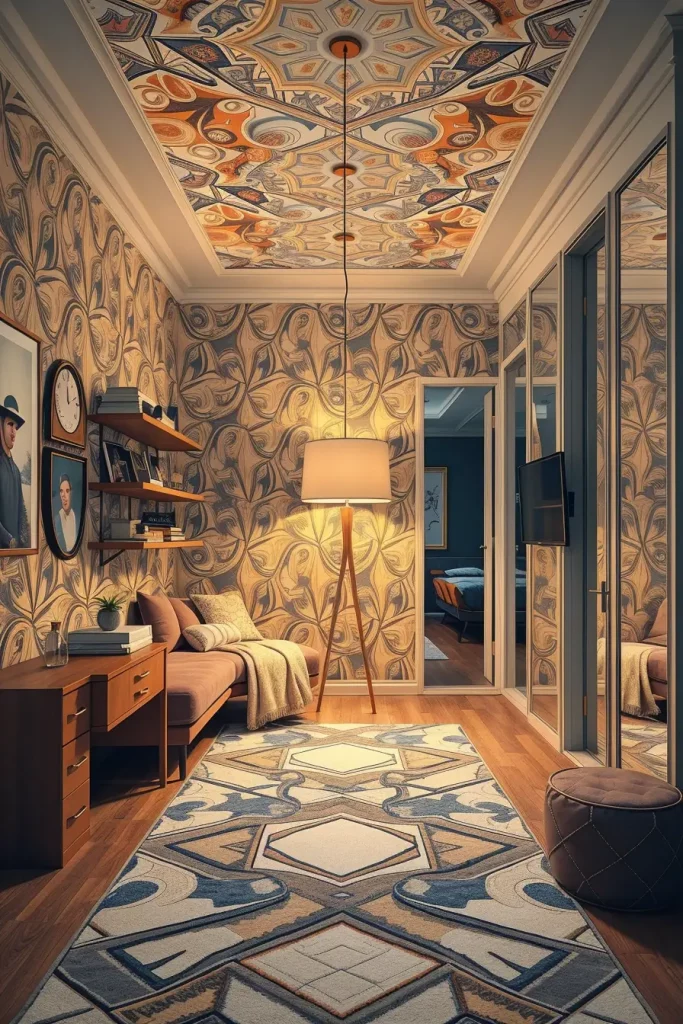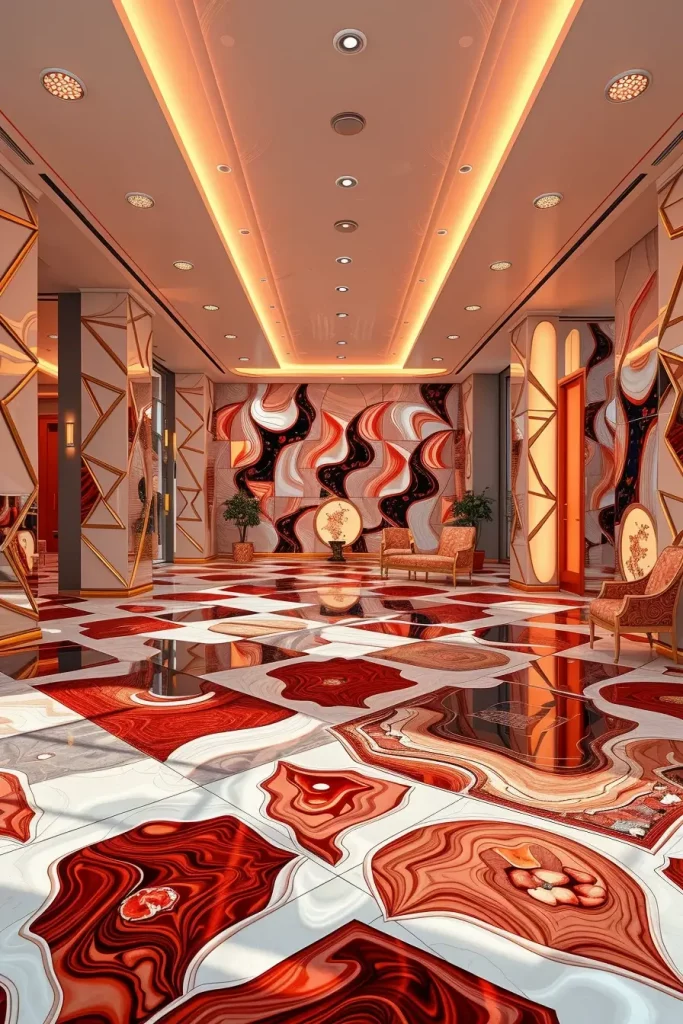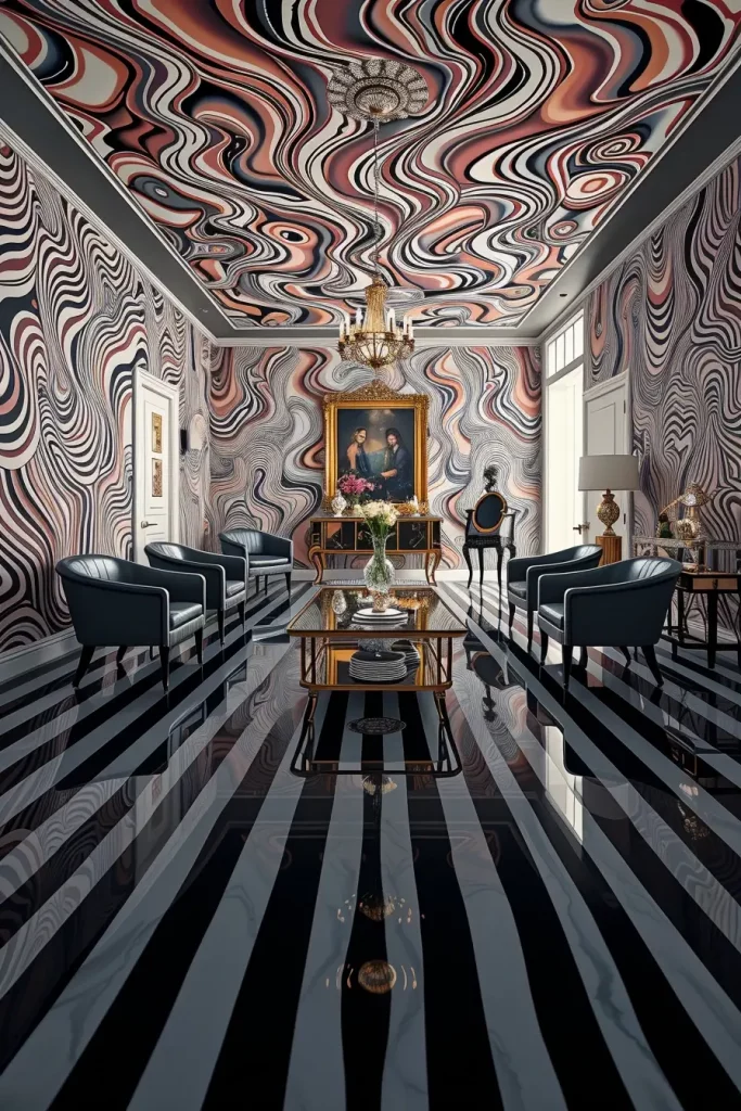 I think that the most interesting method of bringing surrealism into the house is the flooring. When the floor itself is an optical illusion, it turns the space into a dreamlike space. Geometrical patterns, distorted perspective, or even 3D-effect tiles can deceive the eye and make an ordinary room feel exceptional. It is a style that does not only cover the surfaces but transforms the way people feel the room.