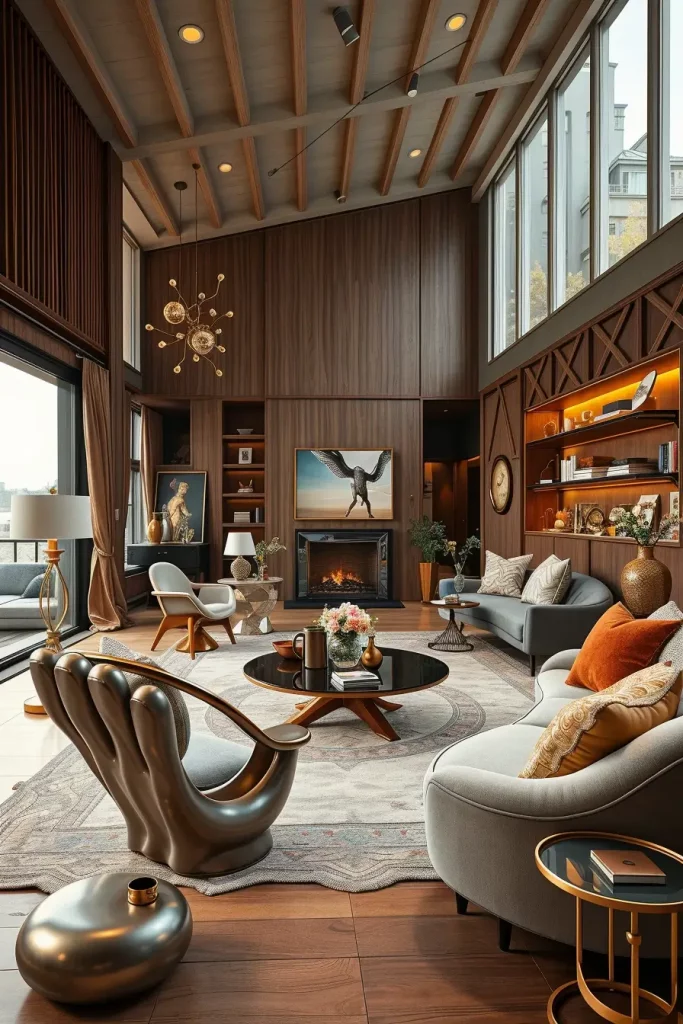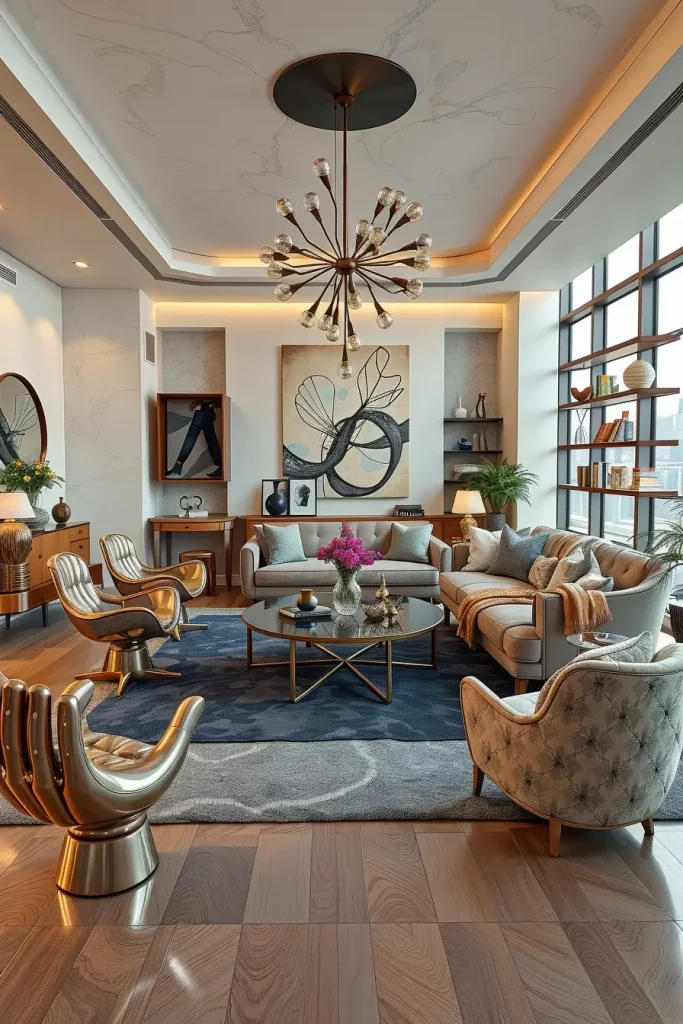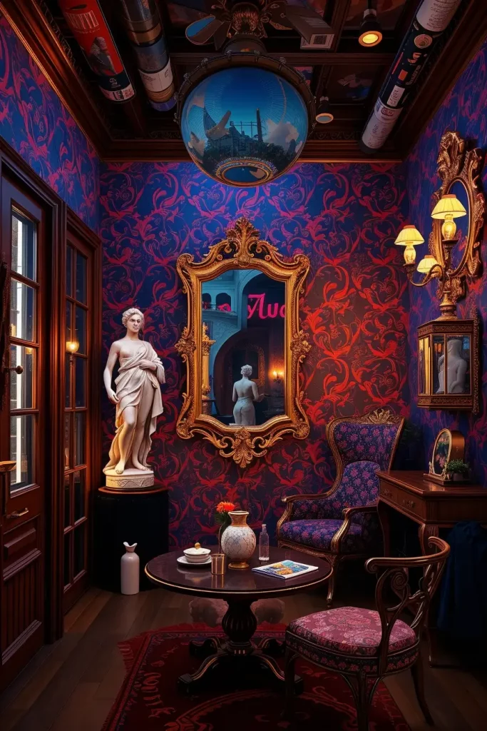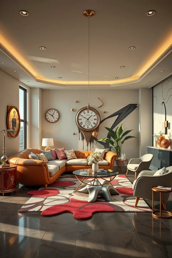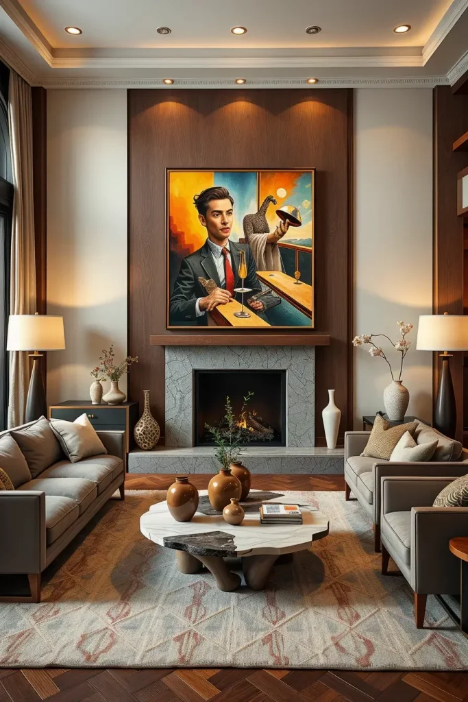 To complement this area, I would also recommend to layer textures, such as metallic finishes on wood or plush upholstery on unusual frames. These facts enhance the surrealist effect and comfort remain at the top.