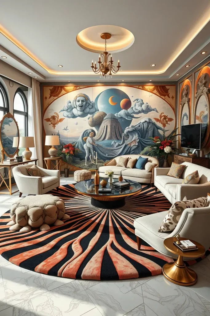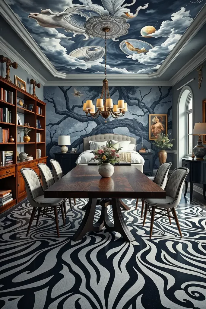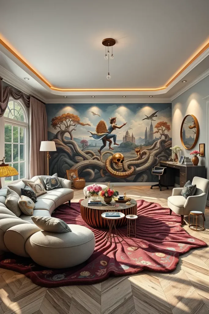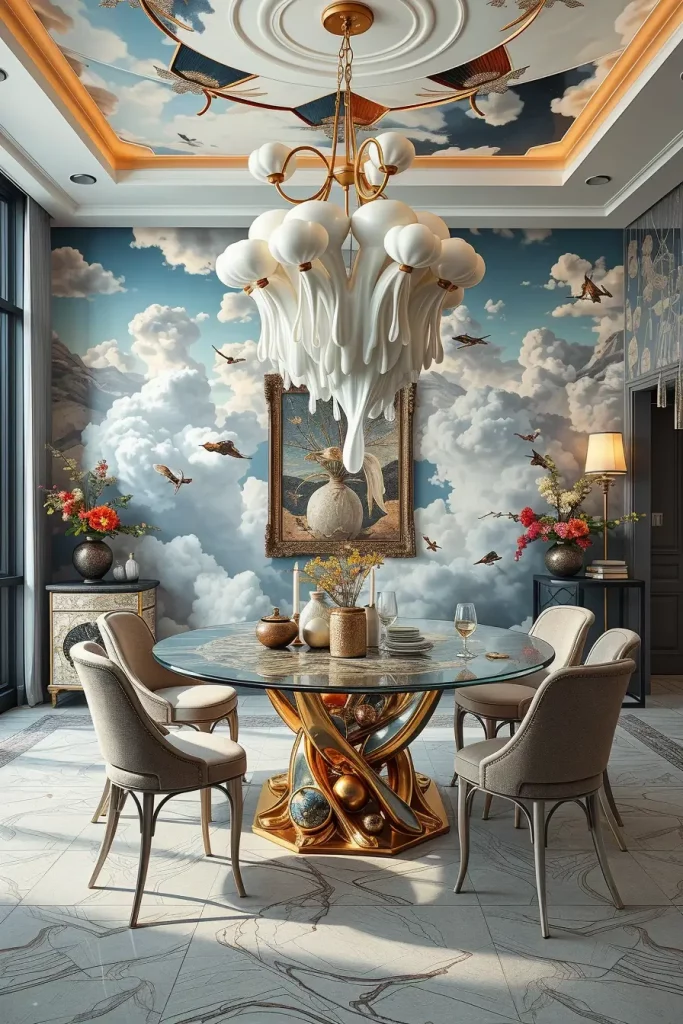 In my professional opinion, surrealism is most effective when it is an invitation to a new world, not a chaotic experiment. As an example, Architectural Digest has repeatedly stressed that to make surrealist decor work, the walls or flooring should be neutral so that the motifs can be seen without dominating the room. I completely concur- surrealist motifs must be focal, not distractive.