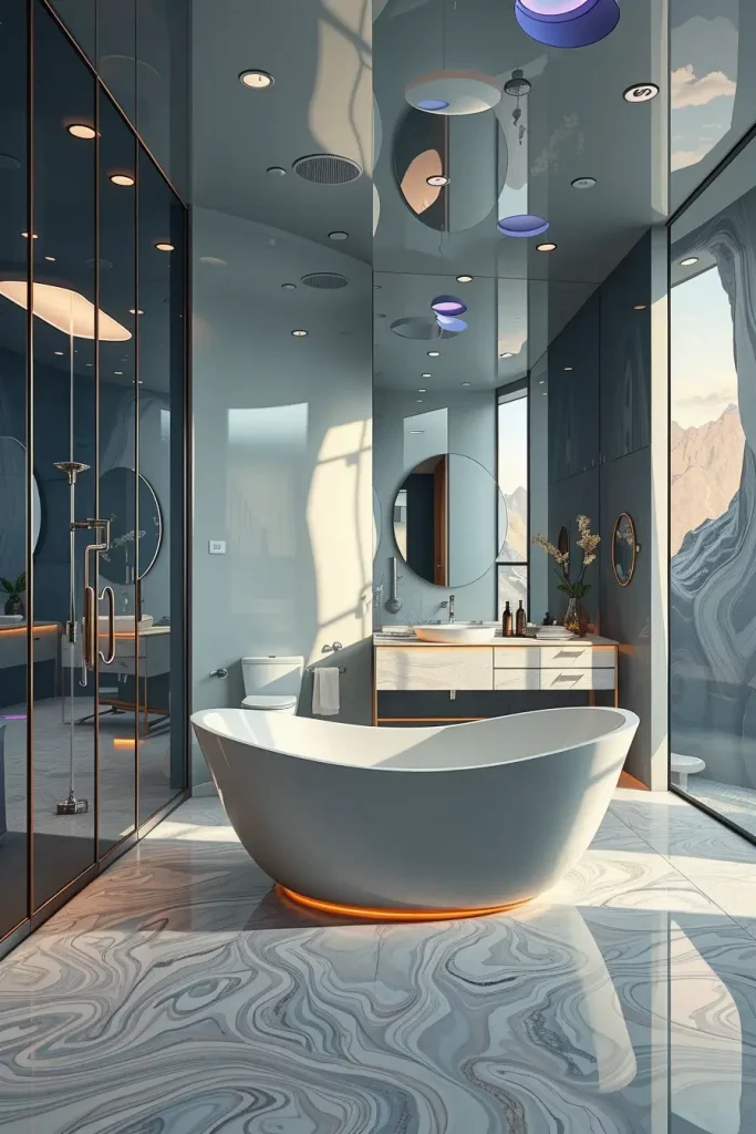 In this type of interior, I prefer to select freestanding bathtubs with unusual shapes, such as melted shapes or oversized geometric shapes. The illusion of defying gravity is created by the addition of faucets that look like floating sculptures or vanities that are suspended with invisible supports. Every element is functional and artistic at the same time reminding us that surrealism can only flourish when practicality and imagination collide.