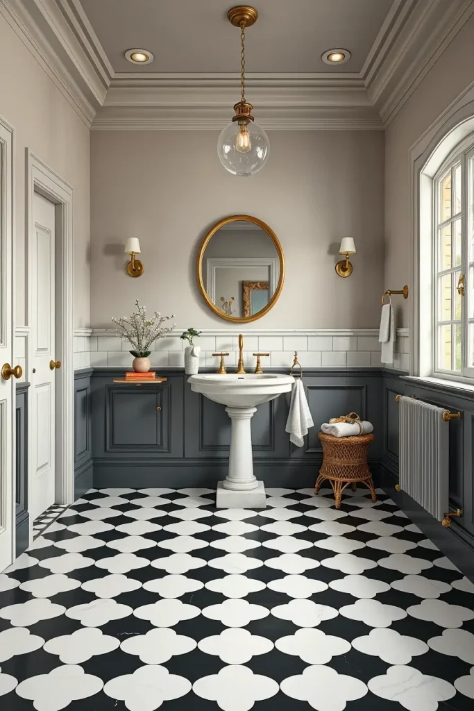 One of the most effective methods to express the personality in a modern vintage bathroom is through flooring. I tend to gravitate towards patterned tile floors, be it black and white checkerboard, encaustic patterns or geometric patterns that echo Art Deco influences.