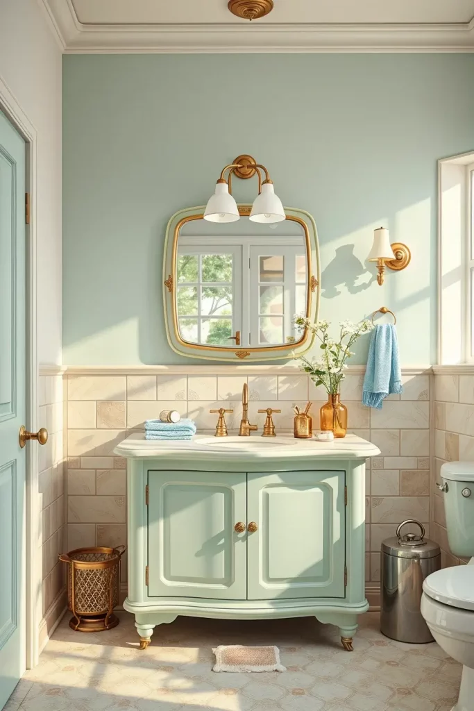 The use of color is an effective bathroom design element, and pastel colors have become my solution to balancing retro and contemporary. The presence of soft pinks, mint greens, and powder blues contributes to the modern vintage bathroom that is welcoming and refreshing.