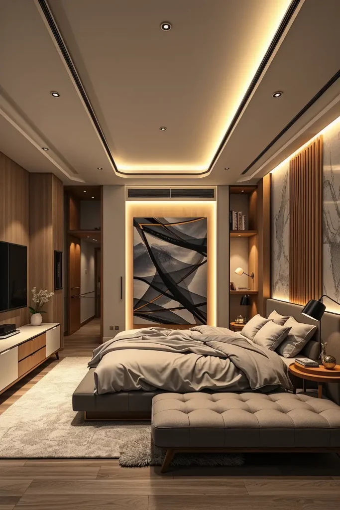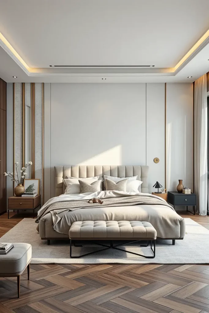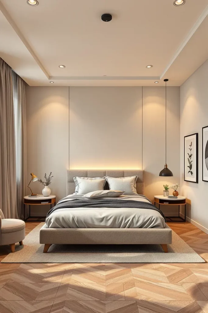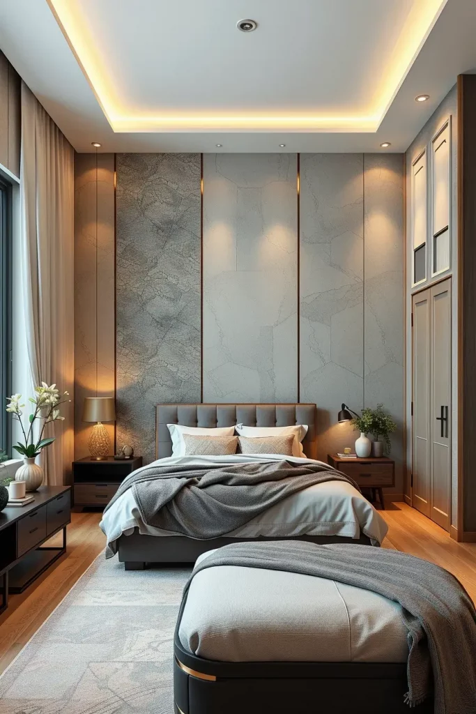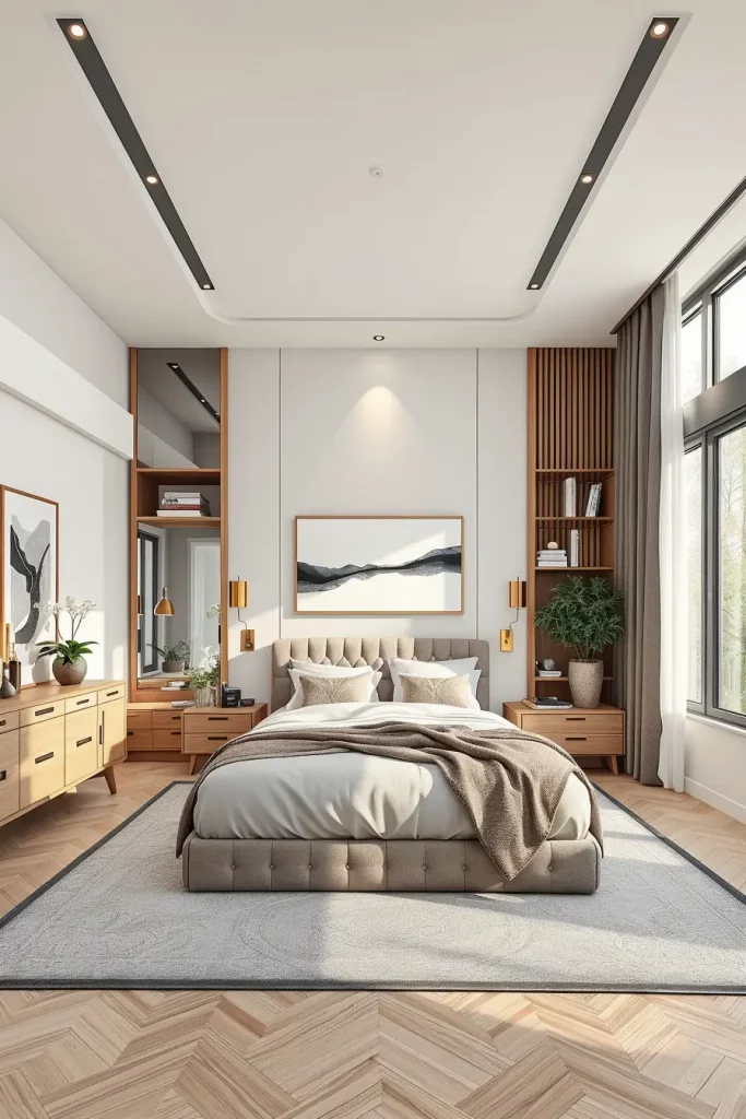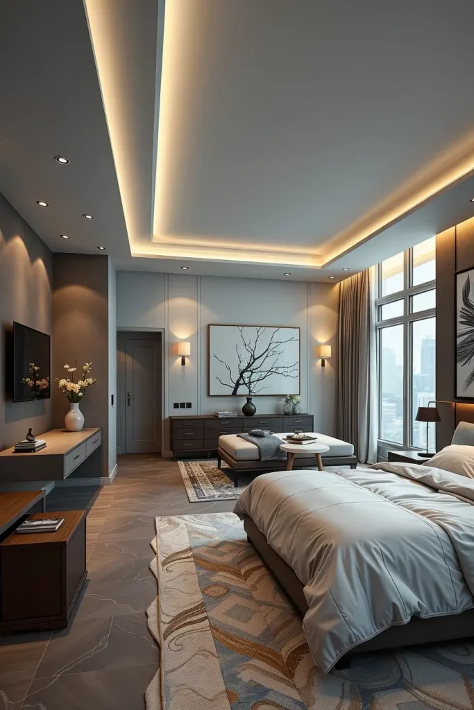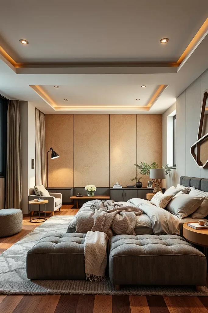 Ceilings play the role of design in the modern bedroom design in 2026. The design of the ceiling I practice is one where I look to give the space a 3D element without being too troubling. This trend is characterized by clean lines and finishes.