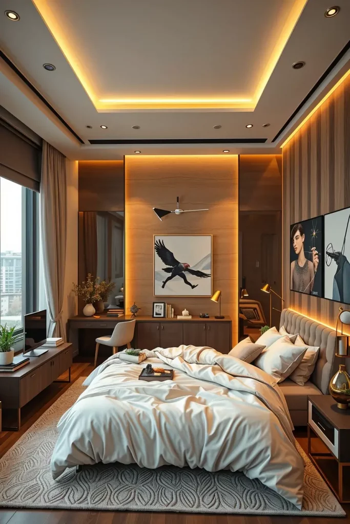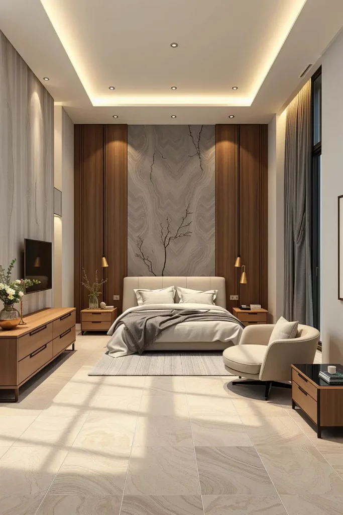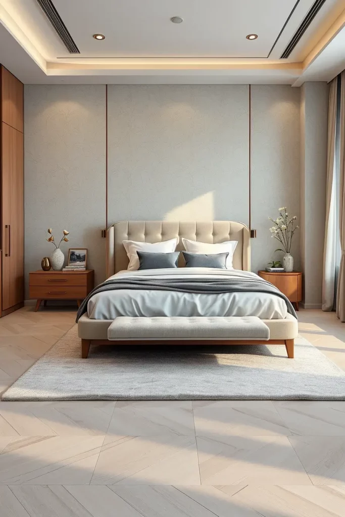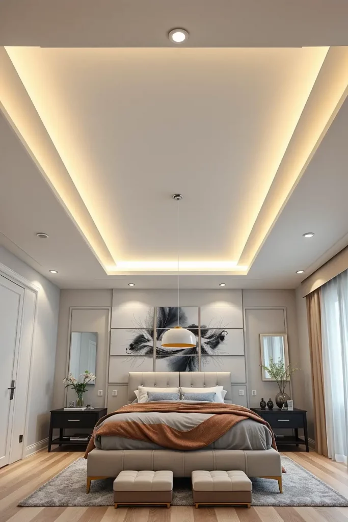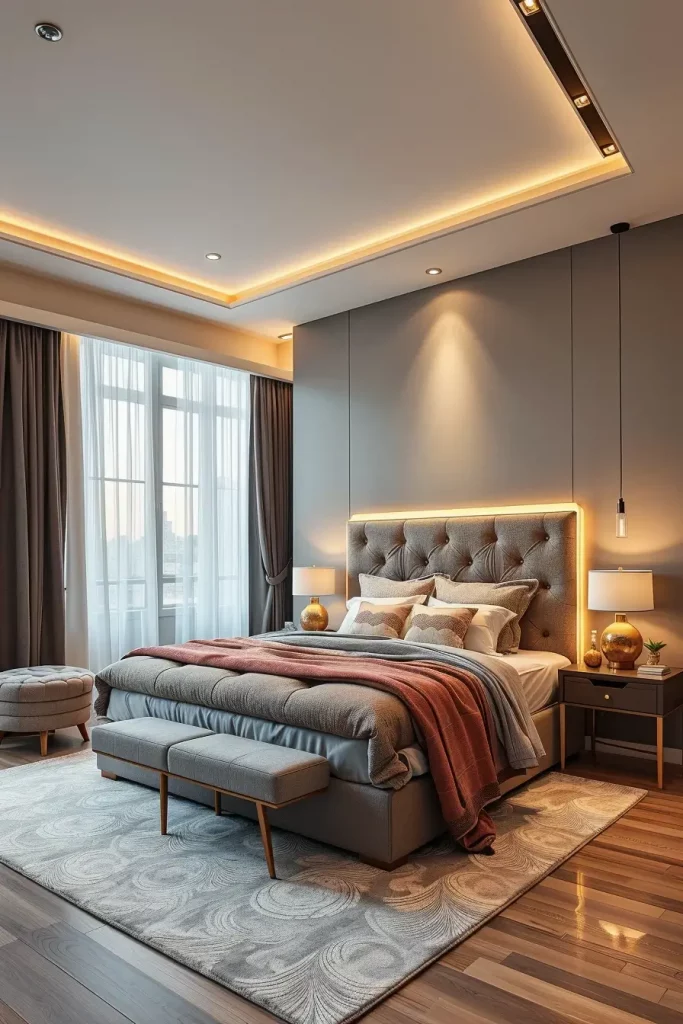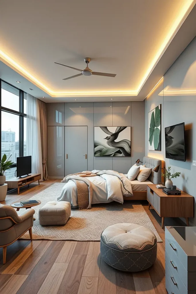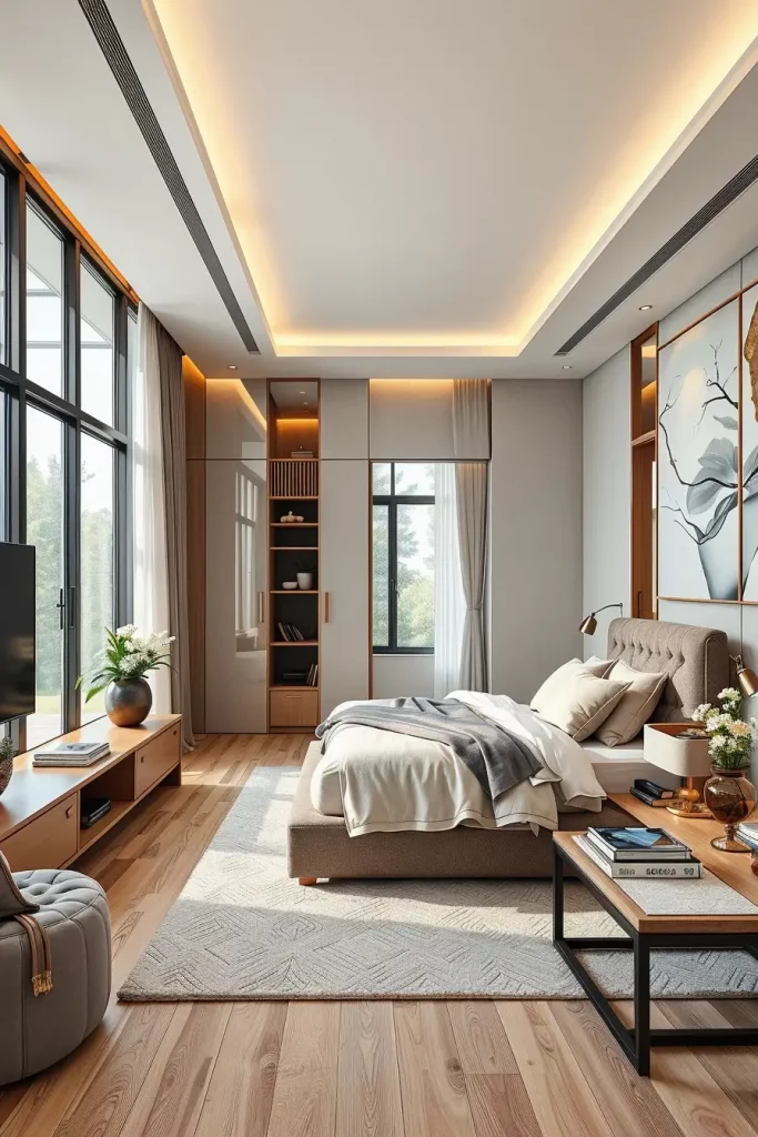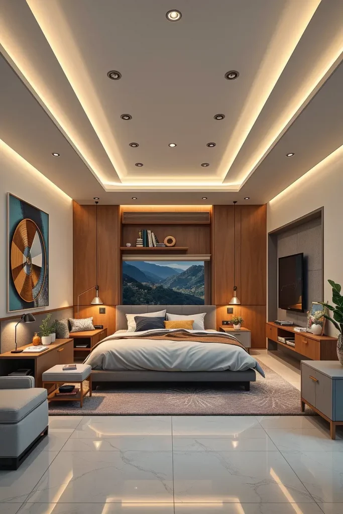 Ceilings play the role of design in the modern bedroom design in 2026. The design of the ceiling I practice is one where I look to give the space a 3D element without being too troubling. This trend is characterized by clean lines and finishes.