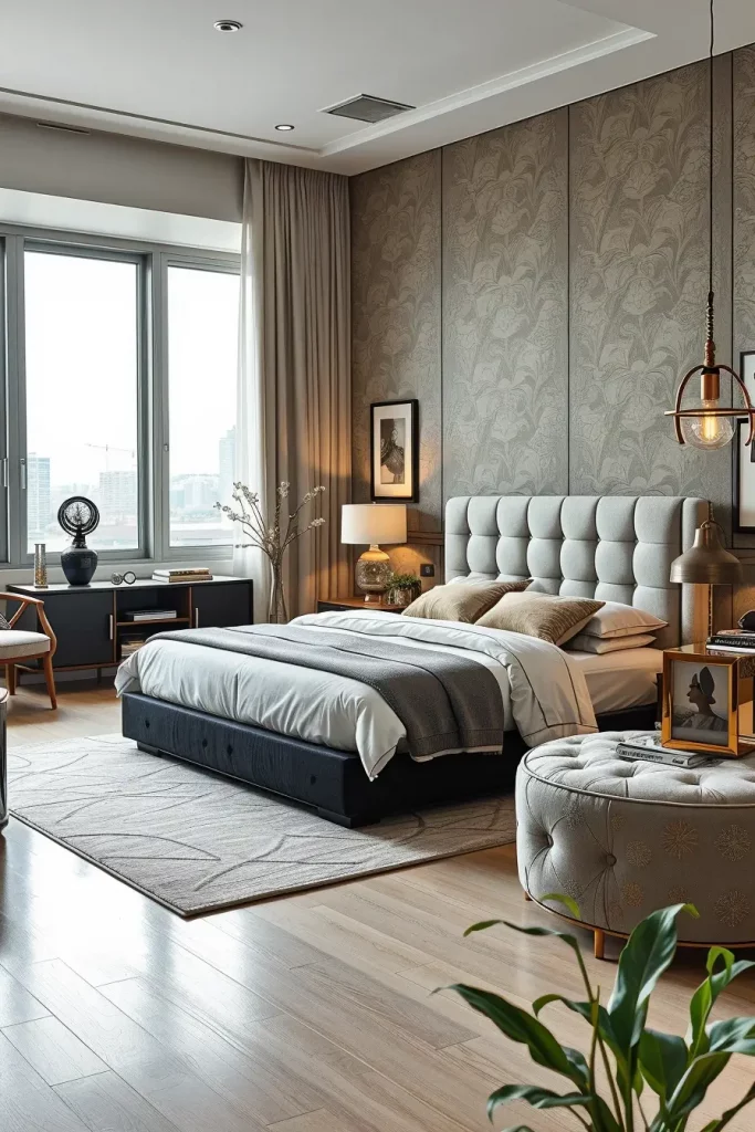 The room can be transformed with accent walls, sculptural lighting or one statement piece of furniture. I usually play with textured panels, rich colored fabrics or artistic headboards to add interest to the room.
