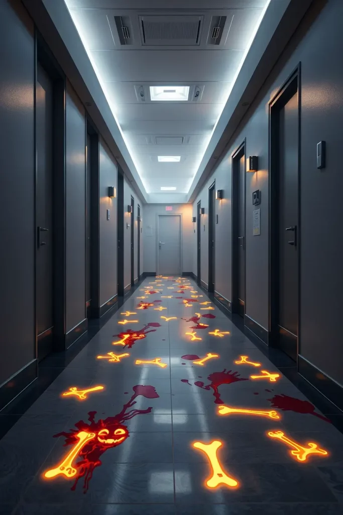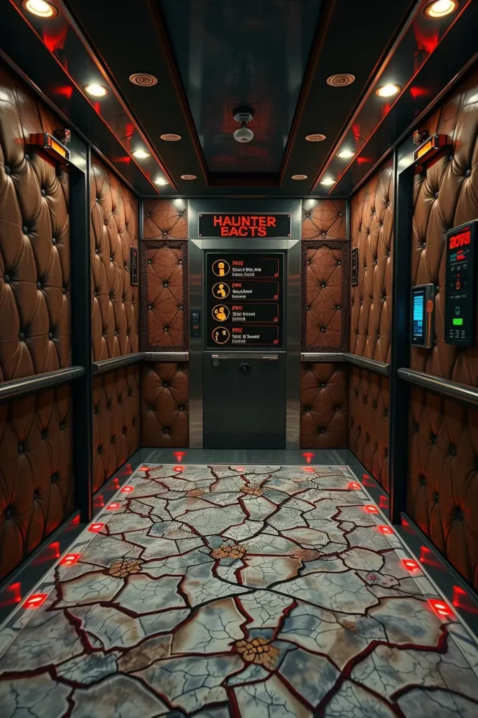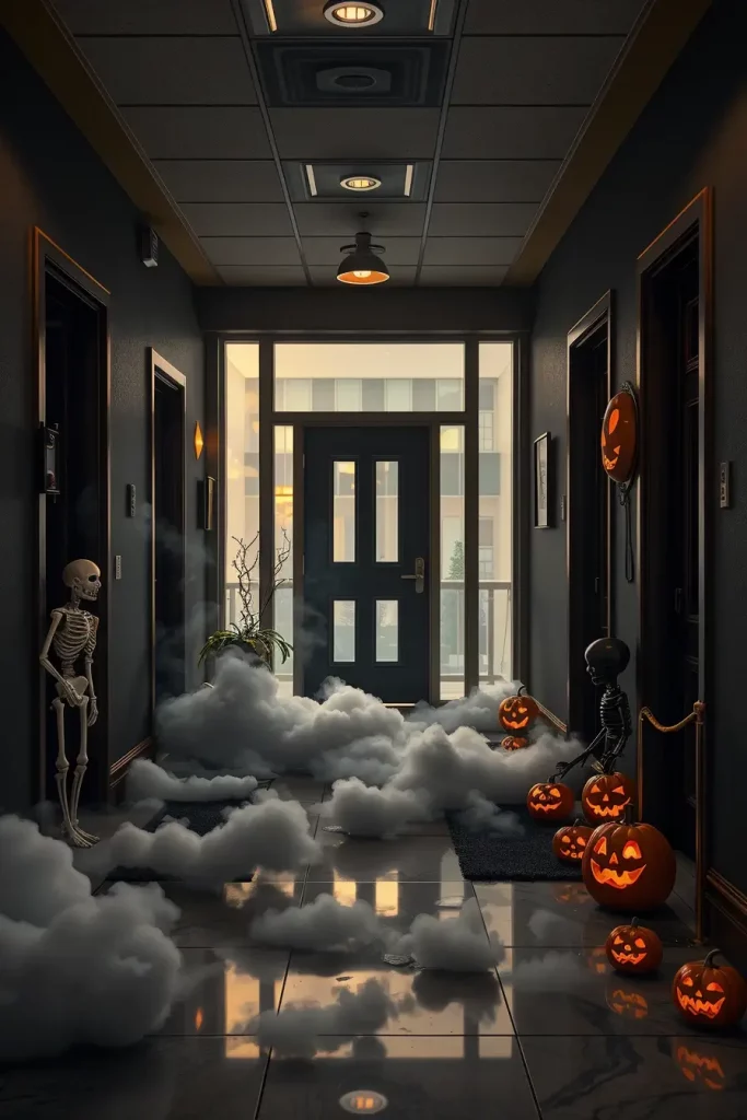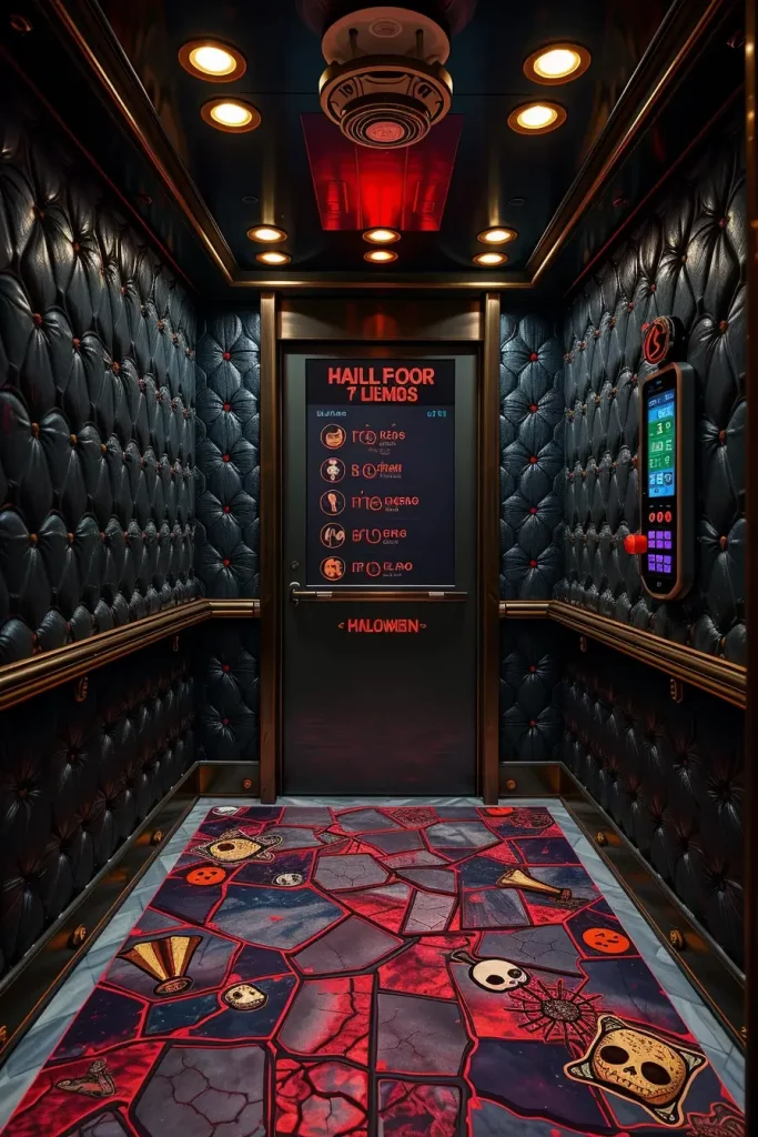 The elevator is a golden chance of frightening Halloween decorations. I turn elevators into the “chambers of doom” with motion-activated sound, floor decals that resemble cracked floors or lava pits, and walls with red LED strips to give the impression of an underworld. When someone enters, sensors activate a sound bite—such as a hellish cackle or a beating heart.