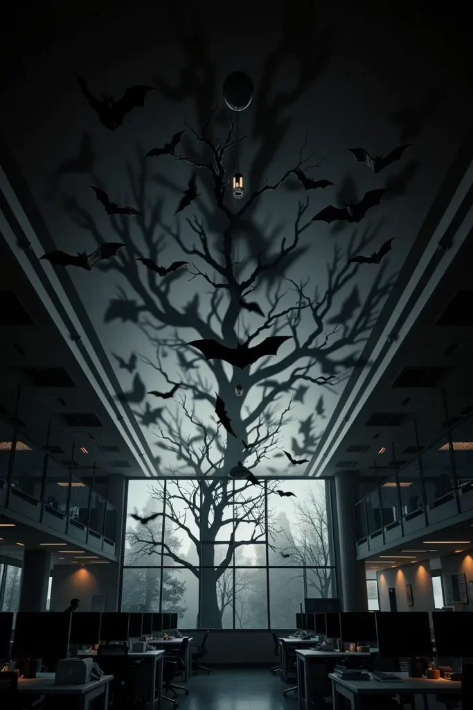 I have always thought that the lighting can change the mood of the whole room, and Halloween is not an exception. In a business environment where overhead lighting is the norm, it is possible to produce a gothic effect by replacing or altering the existing lighting fixtures to chandeliers covered in fake cobwebs, chains, and hanging bats. These theatrical focal points have the ability to transform ordinary spaces such as conference rooms or lobbies and place employees in a creepy environment that is more reminiscent of Dracula than Monday morning.