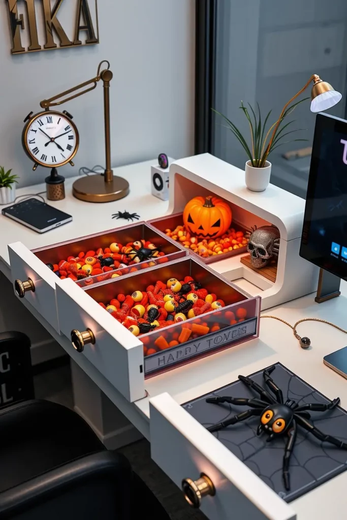 The idea was fun and interactive and it was a success- every desk drawer was a mini trick or treat station with candy, spooky notes or small pranks. I requested employees to make one of the drawers Halloween-themed with props and change goodies every day. Others included flashing LED eyes; others wrote creepy riddles or included spider rings.