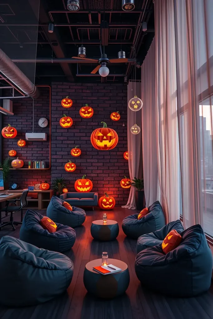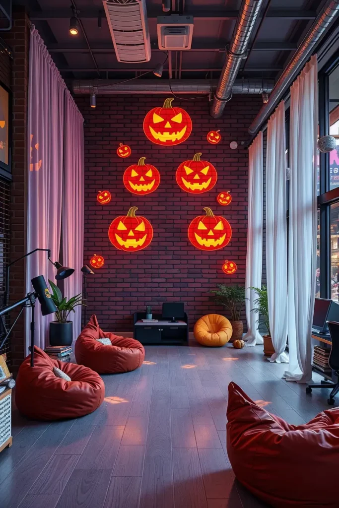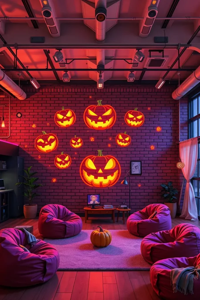 In 2025, digital decor has made a giant step, and one of the things I like the most is the animated jack-o-lantern walls. They can be applied in meeting rooms or break areas to fully change the visual experience of the office without making any permanent modifications. Moving, blinking, talking animated projections of grinning pumpkins can transform an otherwise sterile whiteboard wall into a gateway to Halloween horror.