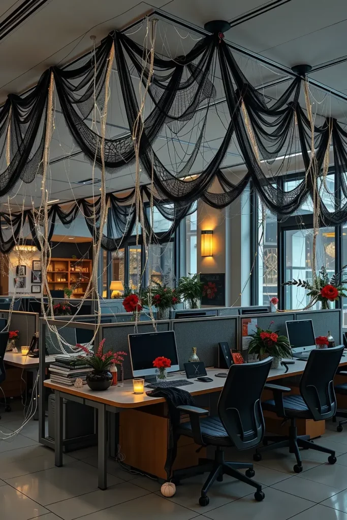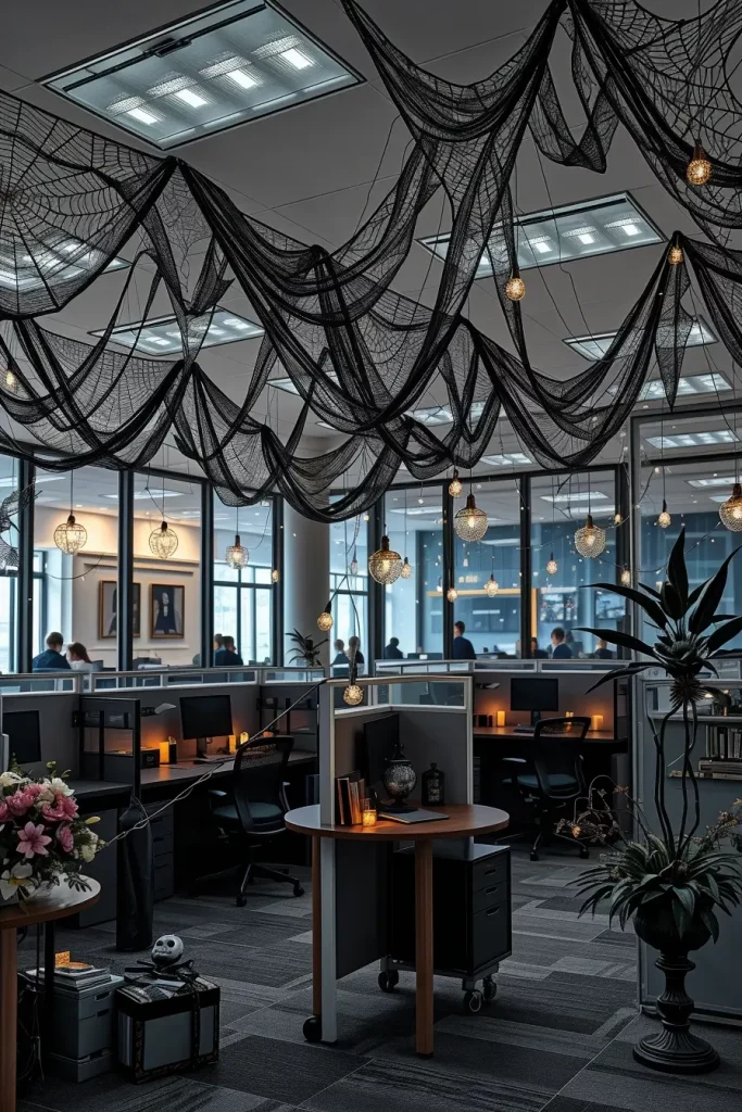 The days of the cheap, messy spider webs that are thrown haphazardly over furniture are gone. In 2025 I would rather use designer cobweb drapery- textured overlays with fiber optics or fairy lights that cause the webs to glow. They can be strung up on glass partitions, over cubes, or the top of shared desks so as to be a unified haunted appearance but not distracting.