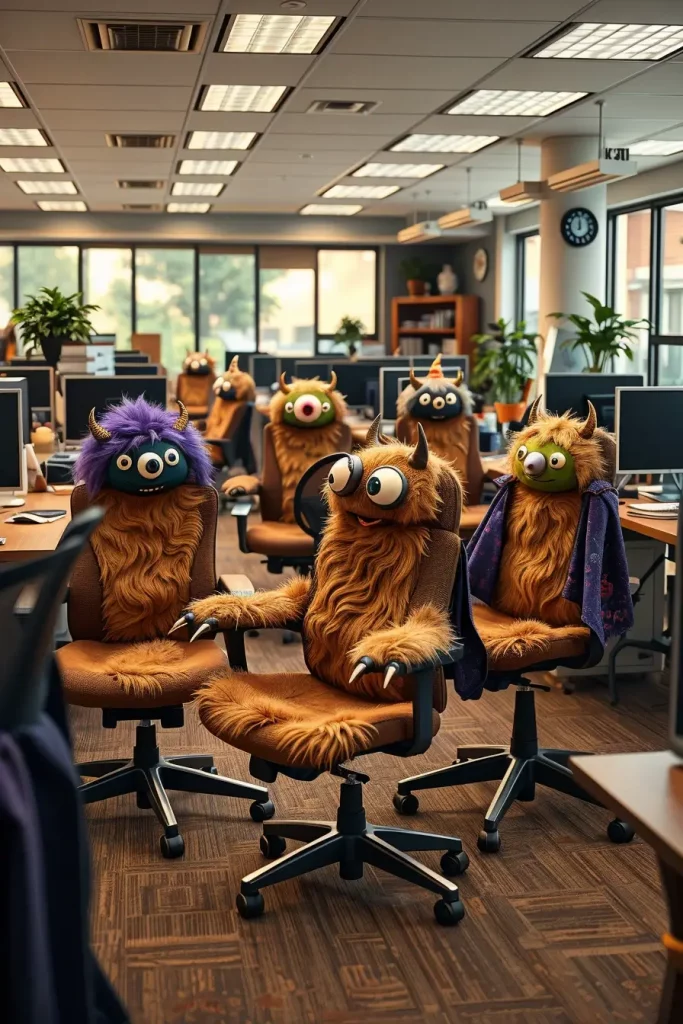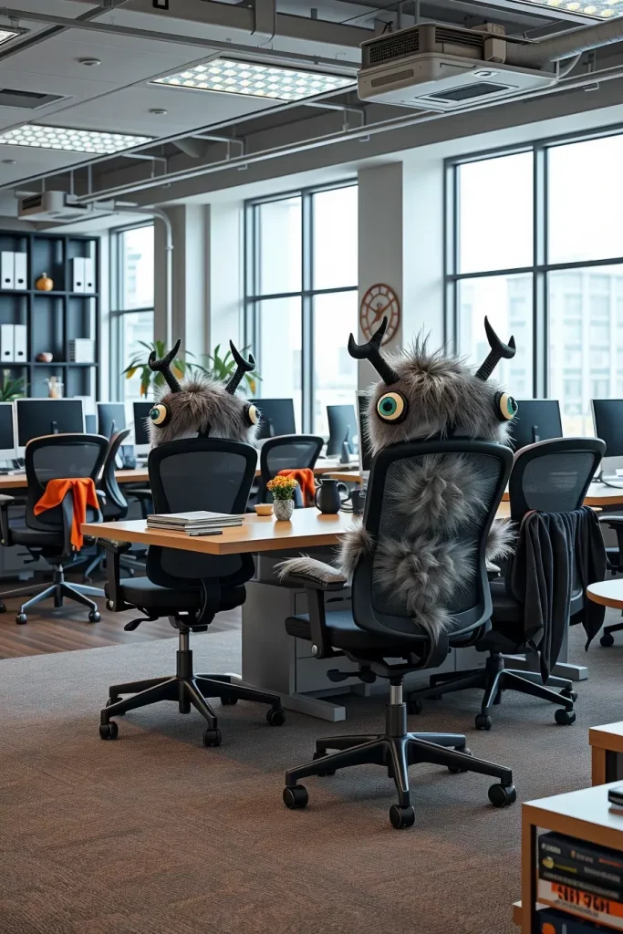 Every chair can be an embodiment of a different creature: a vampire throne, werewolf seat or a stitched Frankenstein chair. This funky change gives personality to workstations without affecting comfort and functionality. I have also discovered that employees are fond of decorating their chairs to reflect their themes on their desks.