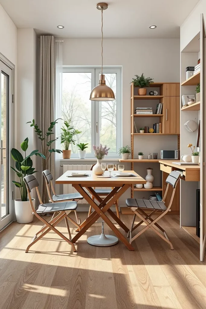 I myself use foldable furniture in my small studio. House Beautiful has listed items such as folding tables as some of the best items to use when designing a small space and I understand why, as they are flexible and do not overcrowd the room.