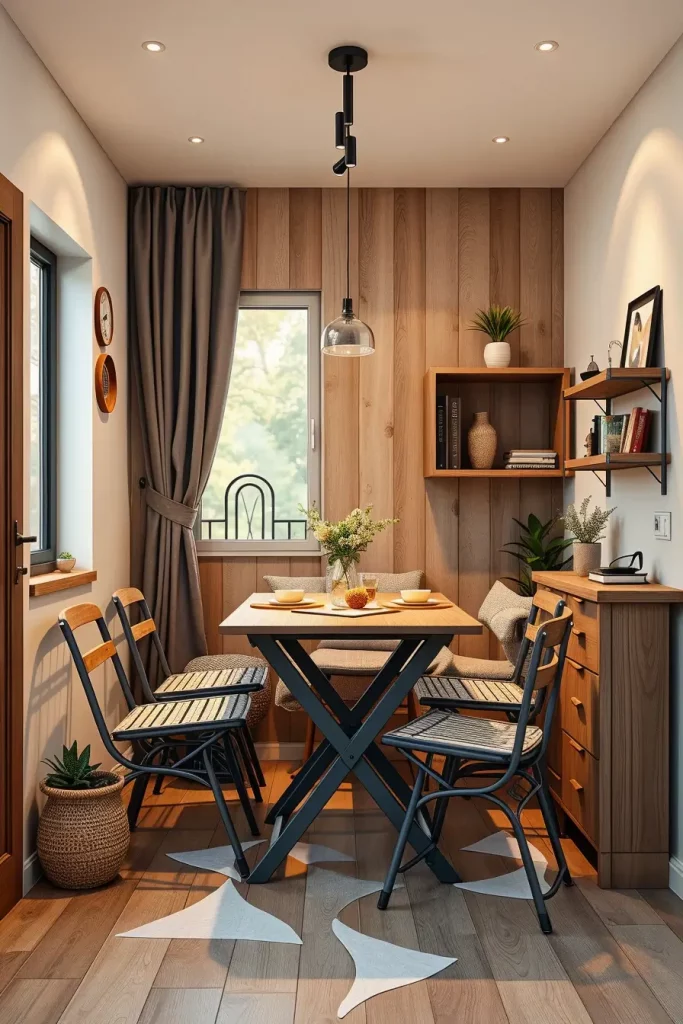 I once designed a small dining space of a client using a round drop-leaf table, wall decorations, and pendant lighting. It made the space a fashionable centre in spite of its size. Better Homes and Gardens usually notes that overhead lighting in dining areas makes small dining spaces purposeful and I concur.