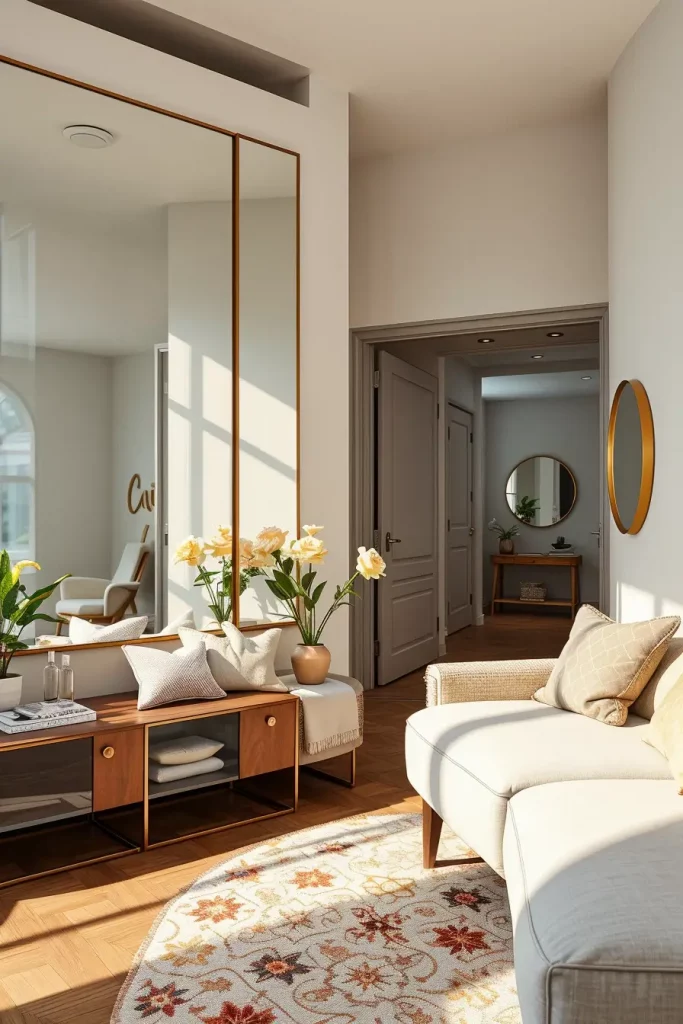 I tend to use full-length mirrors, mirrored closet doors, or ornamental wall mirrors that are opposite windows. Circular mirrors are ideal in hallways and rectangular mirrors are ideal in living rooms. Framed designs are stylish and frameless mirrors are modern and smooth.