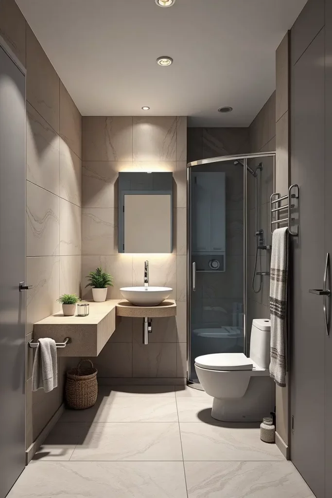 What I would include here is the addition of multi-purpose furnishings like vanity doubling up as storage or even fold out drying racks- these add practicality to the day to day life.