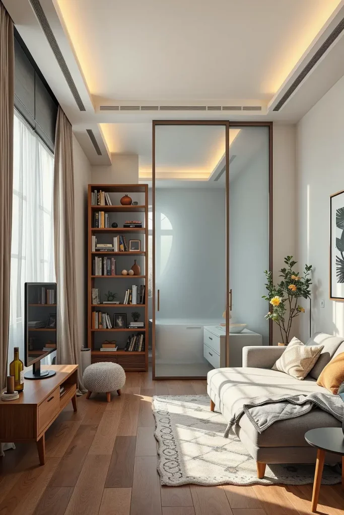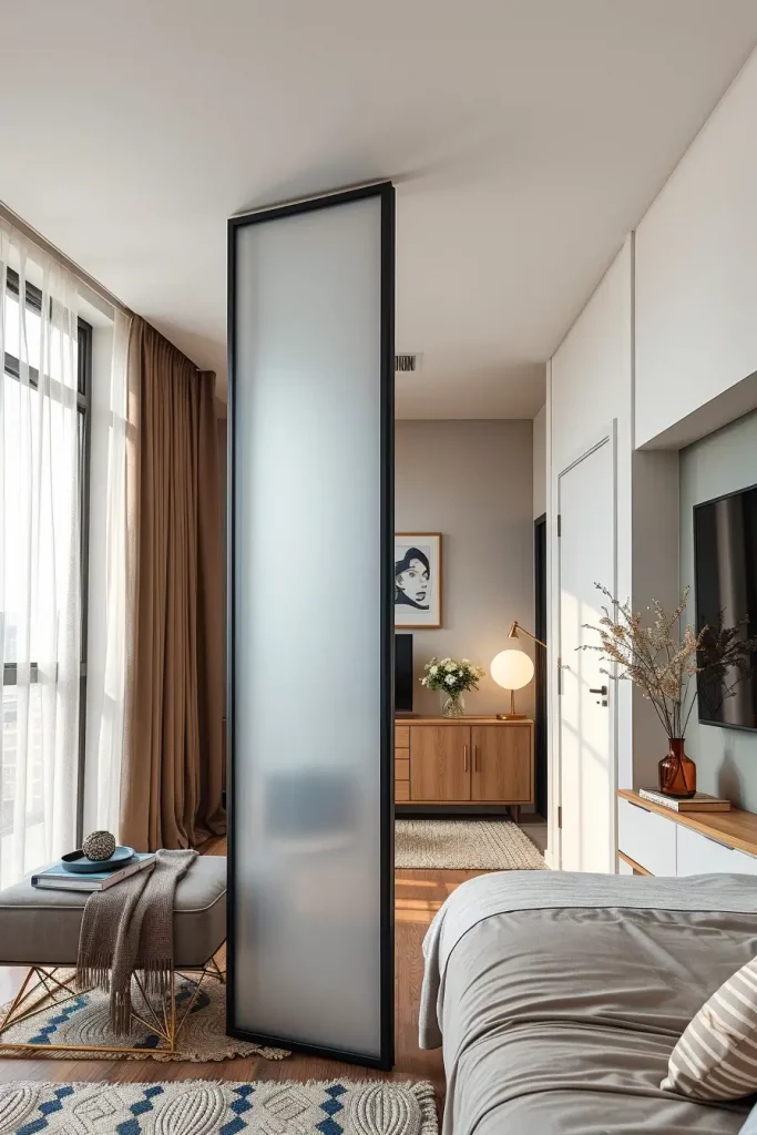 I consider the room dividers as a necessity in small interior where a single room has several purposes. Lightweight dividers can provide privacy without occupying space as opposed to permanent walls. Areas can be defined with sliding panels, folding screens or even open shelving.
