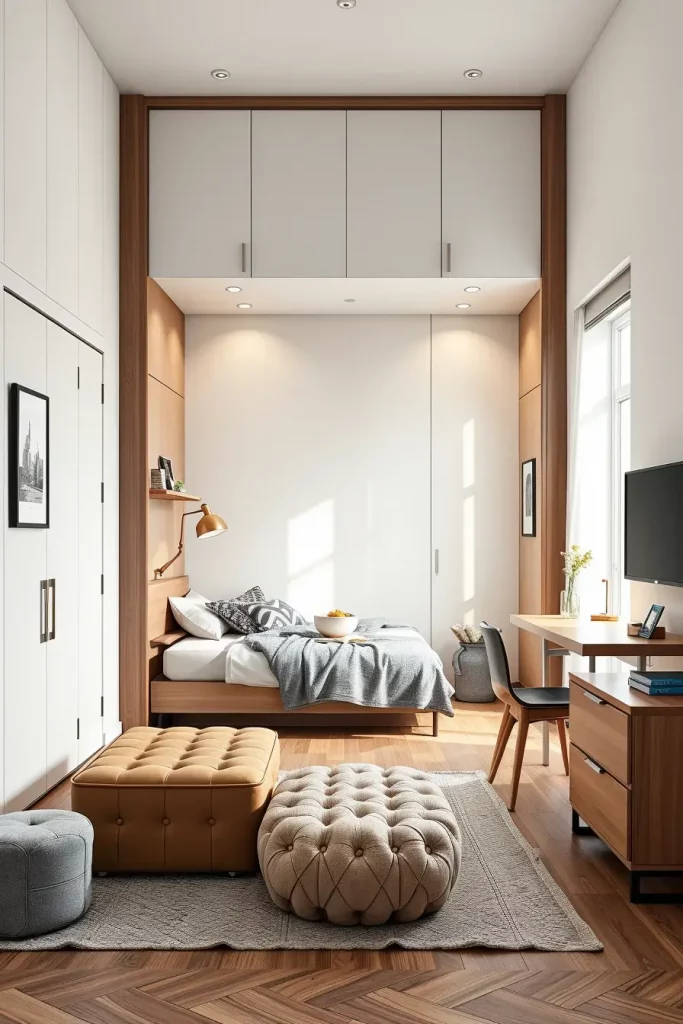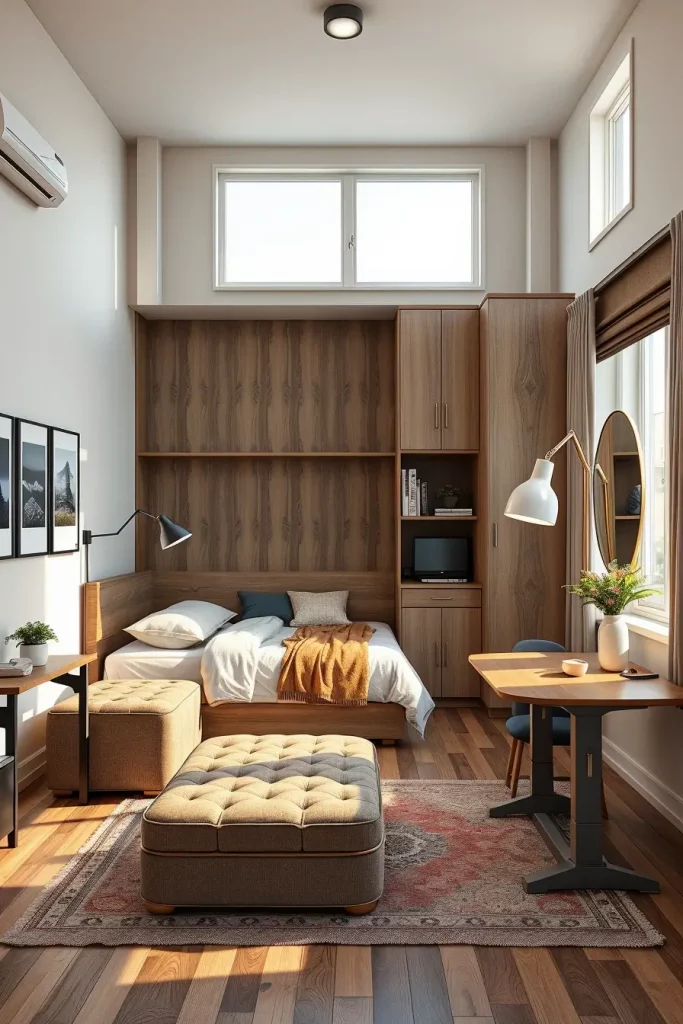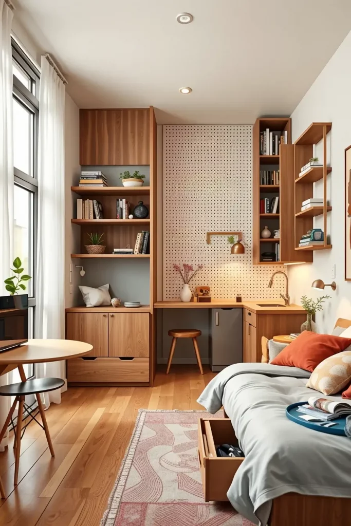 I usually pay attention to the vertical storage in order to clear the floor. Shelves that are floating, pegboards, and tall bookcases are used to store essentials without consuming much square space. Fold-out furniture such as Murphy beds or foldable kitchen tables are also a great investment. These works are flexible and still have a clean open feel in small spaces.