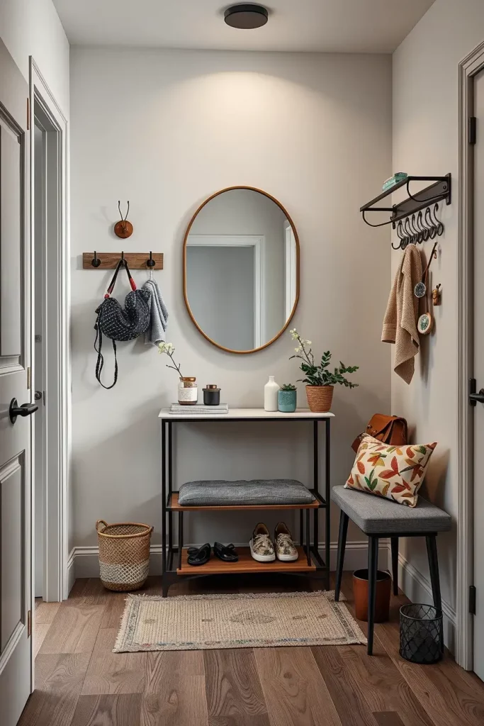 What I would include is a small tray or a bowl to put keys and wallets. It is a trifle, but it helps avoid the everyday mess that takes over a small area.