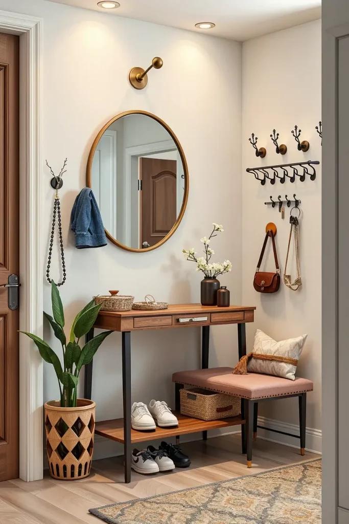Personally, I have discovered that baskets under a console table are miraculous in organizing the daily items. According to designers at Real Simple, small entryways should be fitted with mirrors since they enhance light and depth-I have used this tip and have been successful many times.