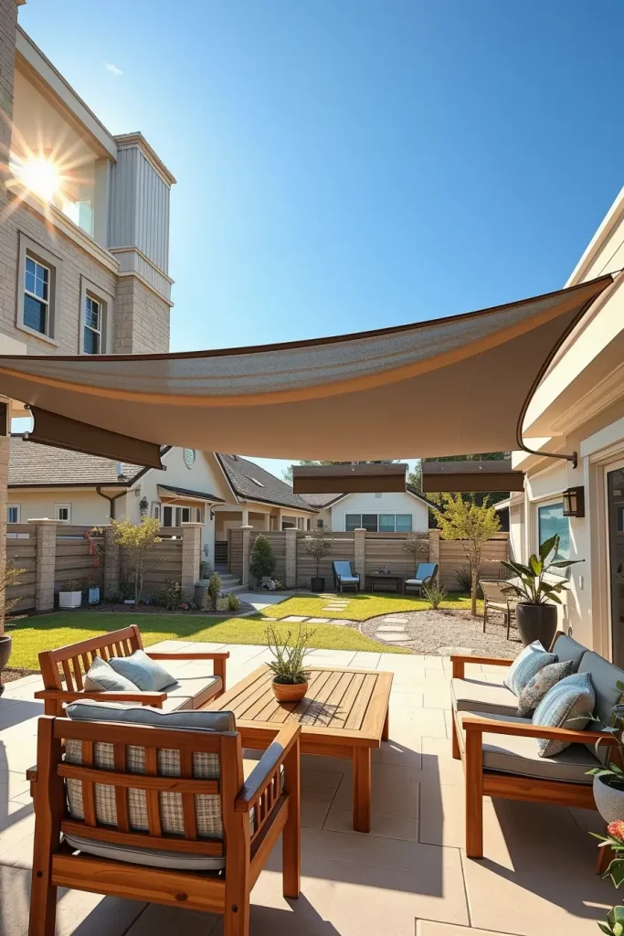 Beyond sun protection, many homeowners now seek patio sun shades that provide visual privacy. In 2026, shaded patios increasingly function as secluded outdoor rooms, and I design them with this dual purpose in mind. Vertical shading elements help block unwanted views while maintaining airflow.
