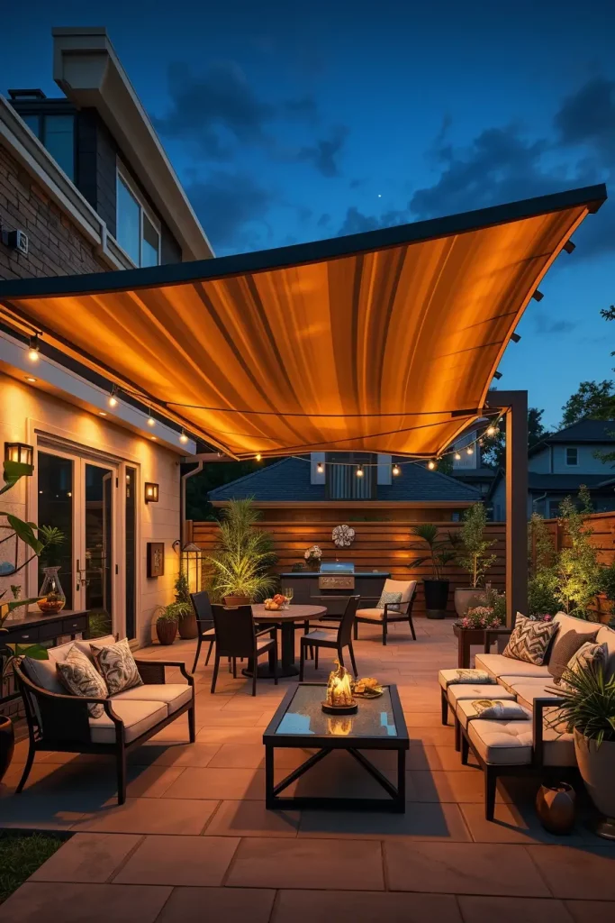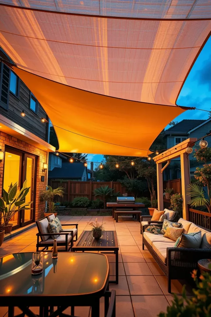 What is often missing in these setups is layered lighting. I recommend adding soft LED strip lighting or solar lanterns beneath the shade structure to ensure the patio remains functional and inviting after sunset, without compromising the natural aesthetic.