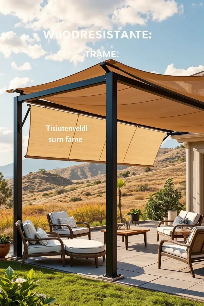 Aluminum or powder-coated steel frames paired with tensioned fabric panels are my preferred combinations. I usually place them above modular outdoor seating, concrete dining tables, or built-in benches. The rigidity of the frame allows for larger spans, which means fewer posts and a more open feel across the patio.